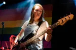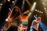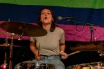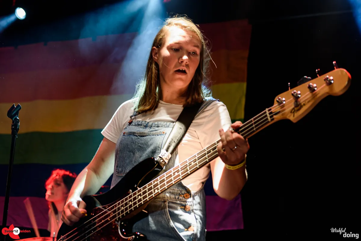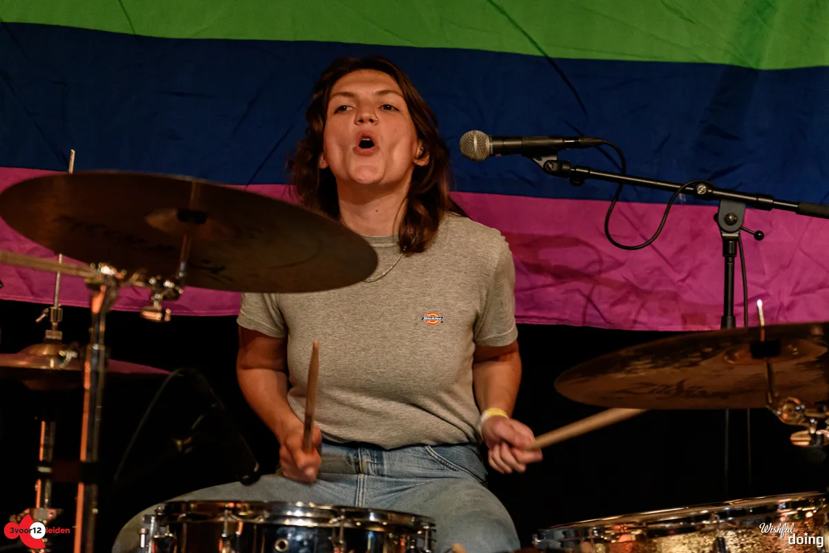 Wat een contrast met de no nonsense queer punk van Charlie & the Lesbians. Tegen de achtergrond van een regenboogvlag brengt dit eigenzinnig uitgedoste viertal uit Eindhoven aanstekelijke songs volgens de oude punktraditites. De bas lijkt niet helemaal zuiver te klinken maar hee, ook dat is punk. De sfeer zit er in ieder geval goed in. Eerder vandaag was er nog een queer pride in de stad, dus iedereen kan na het actie voeren hier lekker uit zijn/haar/hun/diens dak gaan. Met dat dak zit het sowieso goed. Demonstrant of niet: er wordt vol overgave gedanst en gepogoed.