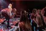 Afsluiter van de avond is YIN YIN uit Maastricht. Opnieuw een act waarbij verschillende windstreken elkaar ontmoeten. YIN YIN haalt hun inspiratie uit Thaise funk, afrobeat, spacedisco en Italo. Qua sound doet het ook denken aan de Turks beïnvloede pop van Altin Gün. De heren vinden het duidelijk leuk om een showtje te maken. Dat zie je niet alleen aan hun Chinees uitziende kleding, maar ook aan hoe ze met elkaar bezig zijn op het podium. Het spelplezier van deze enthousiaste performers is duidelijk zichtbaar. Met hun psychedelische discogrooves krijgen ze iedereen in beweging en de grote zaal van De Nobel is als vanouds gevuld met dansende mensen. Dat dit maar snel weer de gewoonste zaak van de wereld moge zijn!