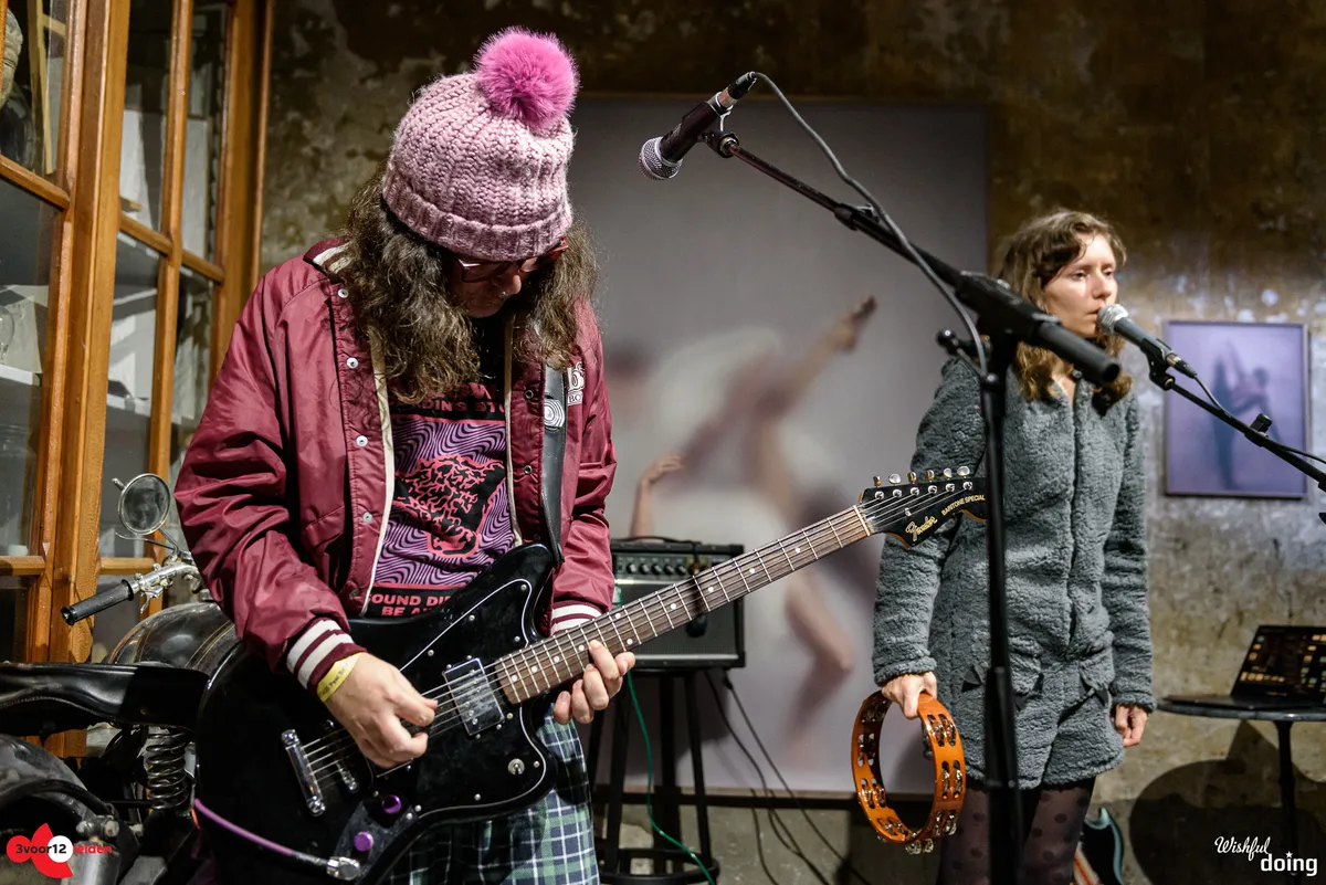 Op weg naar Marktsteeg 10 komen de gruizige gitaren ons al tegemoed als we nog een paar nummers willen meepikken van Kidbug. Zangeres/gitariste Marina Tadic en gitarist Adam Harding brengen een heerlijke mix van shoegaze en dreampop. Deze ongepolijste, dromerige muziek is prima op z’n plaats in het intieme, vintage ingerichte zaaltje van Marktsteeg 10. Marina’s stem klinkt helder boven het gitaargeweld uit. Gesamplede koortjes doen de rest. Rondom de muzikanten staat het publiek stilletjes te genieten. “This is fun, I missed this!,” zegt Marina tegen de volle zaal.