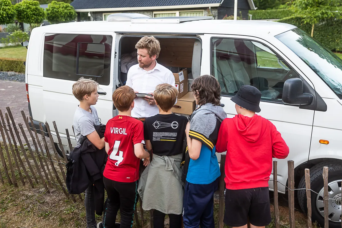 De allergrootste fans, dat zijn de kinderen die vooraan bij het optreden synchrone danspasjes stonden op te voeren. ‘Geef ze maar een gratis cd’ zegt De Ridderbaas tegen zijn vriend en collega. Even later loopt het groepje jongens blij weg, allemaal met een cd in de hand. ‘Ik bedoelde eigenlijk één cd voor het hele groepje’, zegt De Ridderbaas lachend. Hans Hoeverloo knikt. ‘Dat dacht ik al! Maar we hebben er zoveel…’