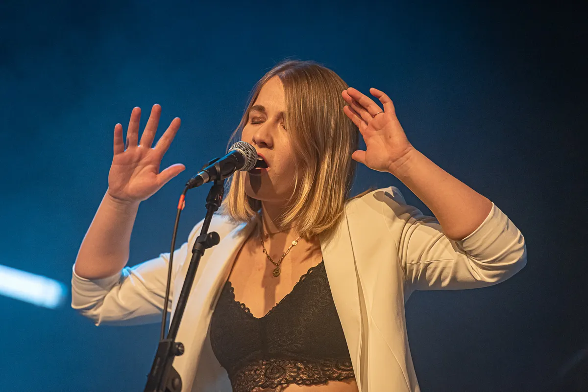 Al in 2018 is op EuroSonic een doelstelling geformuleerd om in 2022 een 50/50 verhouding van mannen en vrouwen in de line-up van de festivals te programmeren om de barrières verkleinen en het netwerk te versterken voor vrouwelijke artiesten. De organisatie van de DAP21 heeft dat percentage voor deze editie naar 100% vrouwen getild. In een goed gevulde popzaal in de DRU is de aftrap van de DAP21 een gezamenlijk optreden van de drie frontvrouwen met een cover van ‘Bite The Hand’ van de supergroep boygenius (met Julien Baker, Phoebe Bridgers en Lucy Dacus).