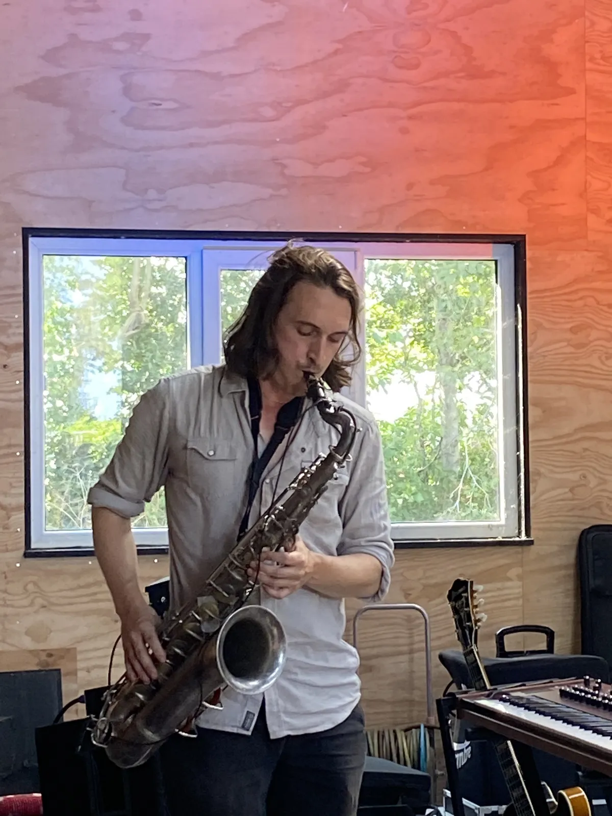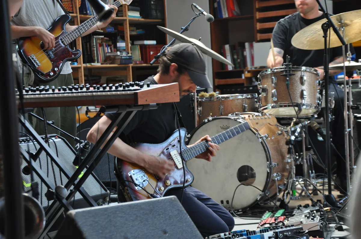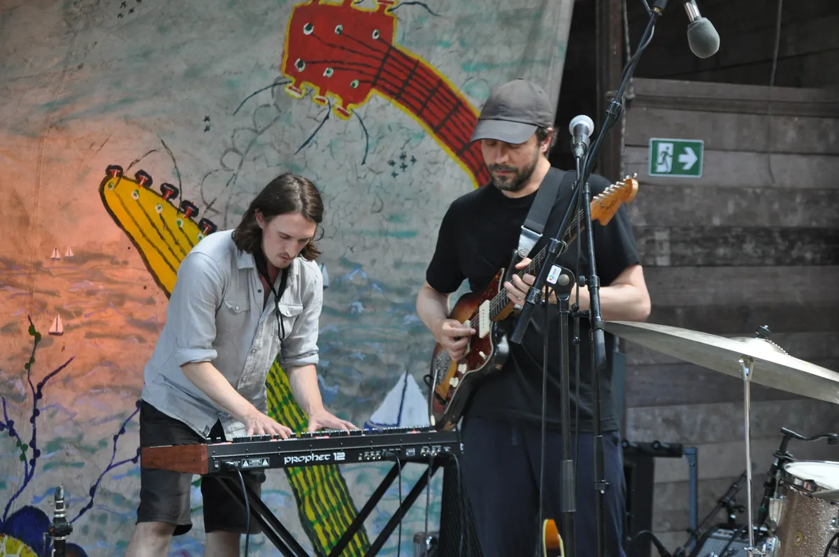 Bert Dockx, Antwerpen 1980, werd met Dans, Dans en Flying Horseman vooral bekend als jazzgitarist en onder zijn eigen naam als singer-songwriter. Hij richtte Ottla in 2018 op als gelegenheidsproject. In april 2024 kwam het album Vogel uit: een vogel zingt niet alleen zoete liedjes, maar kan ook klappen en krijsen. Zo komen er ook vanmiddag allerlei invloeden langs: is het jazz, blues, groove of progrock? Het is Ottla, want vliegen, dat doen ze. De temperatuur in de schuur is aanzienlijk opgelopen deze middag en het publiek moet een beetje zuchten. Wat was dit indrukwekkend.