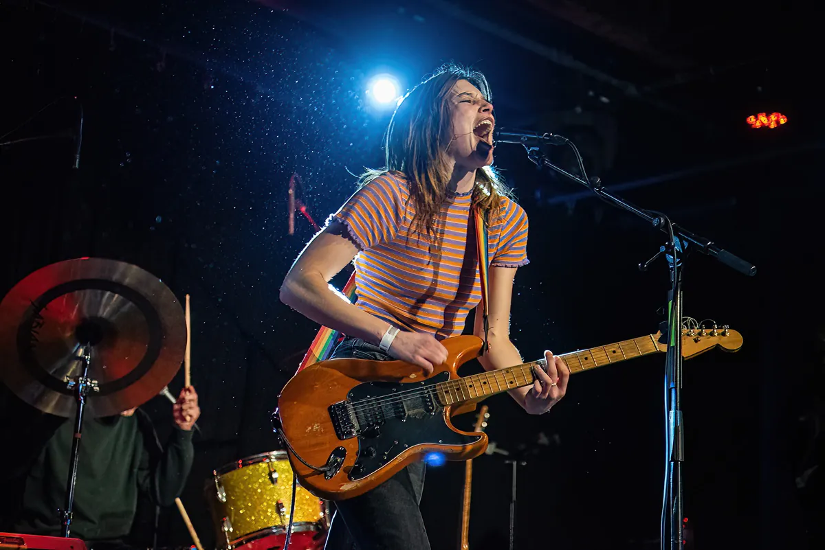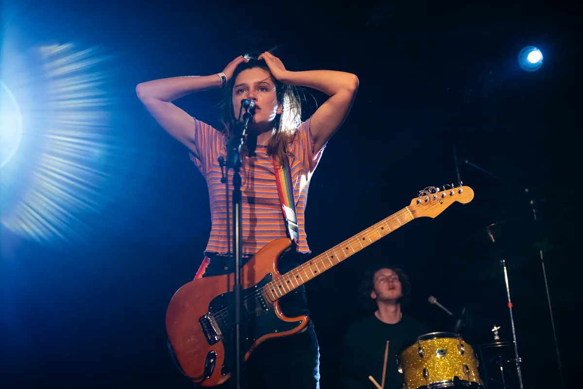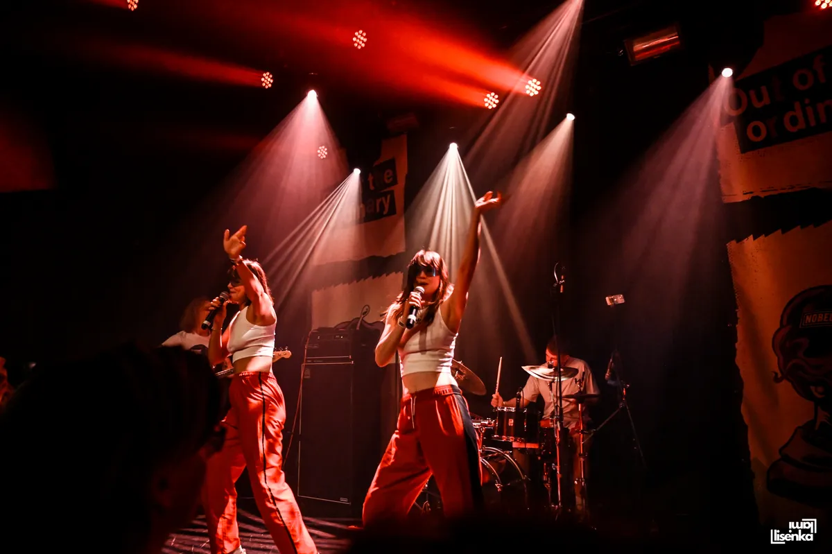 Pip staat kordaat op het podium in een kort, zwart rokje en felrood kort-gemouwde poloshirt-blouse crossover. Elke beat kan rekenen op knikje met de knie, terwijl haar schouders wiegen op de melodie, het haar in een bijna kinderlijke bob met pony. Een soort alt-versie van het beeld dat we kennen van Agnus Young, de iconische gitarist in school uniform, van wijlen AC-DC. Rechts van haar Darek op bas, het hoofd kaalgeschoren met stoppels. Links van Pip, haar broer Tender op gitaar en keyboard, met zijn jongensachtige uiterlijk dat maar niet slijt. Het verlies van drummer Gini wordt opgevangen door de synths die alle bandleden bedienen.