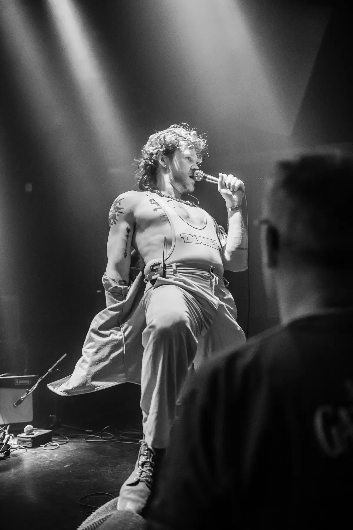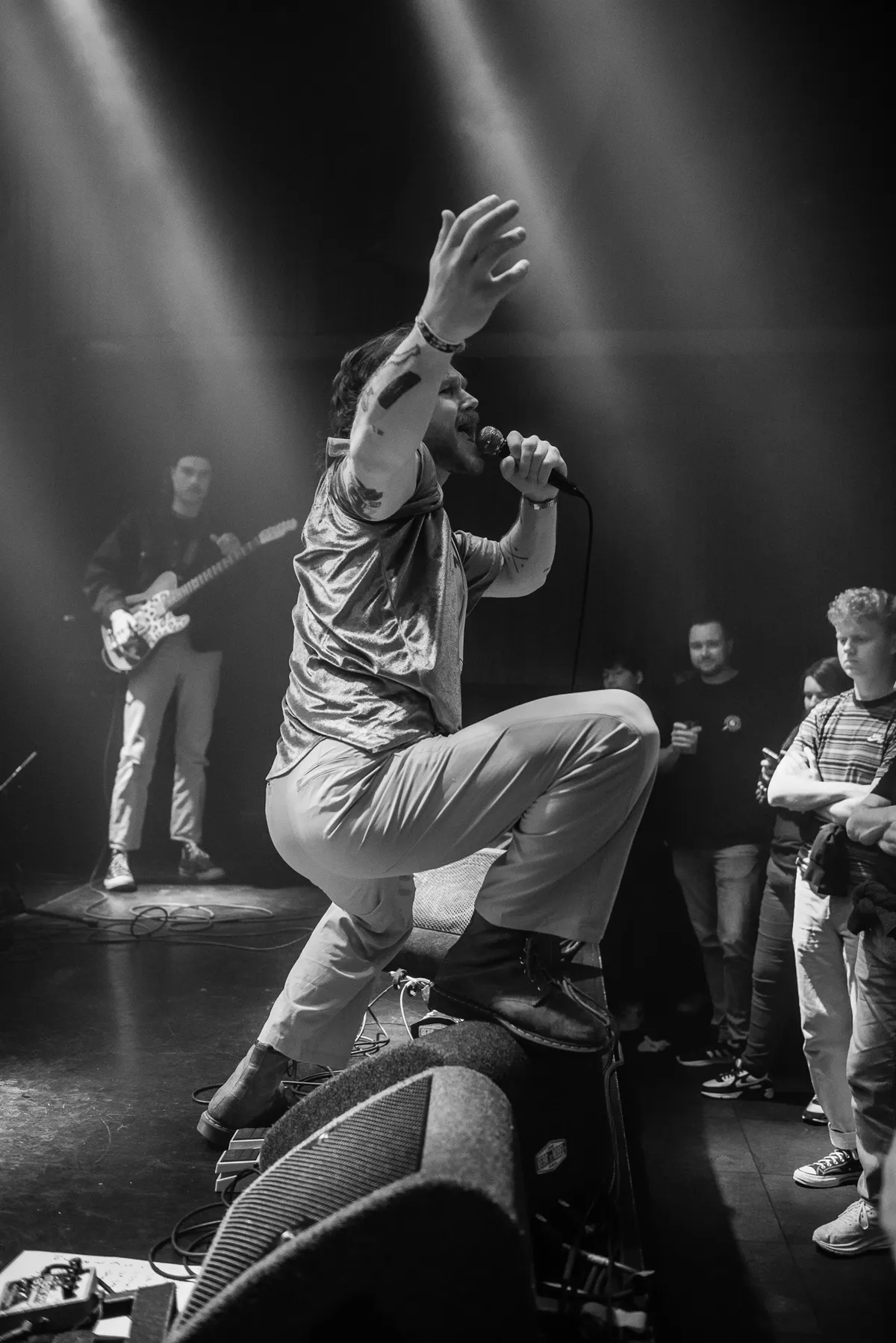 De bas en drum vormen samen zowel de rails als de locomotief waarop de andere wagonnetjes hun lekkere ding doen. Zanger Arthur brengt de logica van frontman naar Jim Morrison achtige hoogtes. Gekleed in halterhemd, grijsbeige chinos en ruw leren bergschoenen, beweegt elke vezel in zijn lichaam mee op de pieken en dalen van zijn zang. Dan weer zwiept hij met de microfoon als was het een lasso, dan weer houdt hij de microfoon in de standaard vast alsof dat het enige is tussen staan en liggen. Als Patrick Swayze gekruist zou worden met Jim Morrison, zou dat eruitzien als deze held. Nu ja, met een snor erbij en een wat meer potige bouw.
