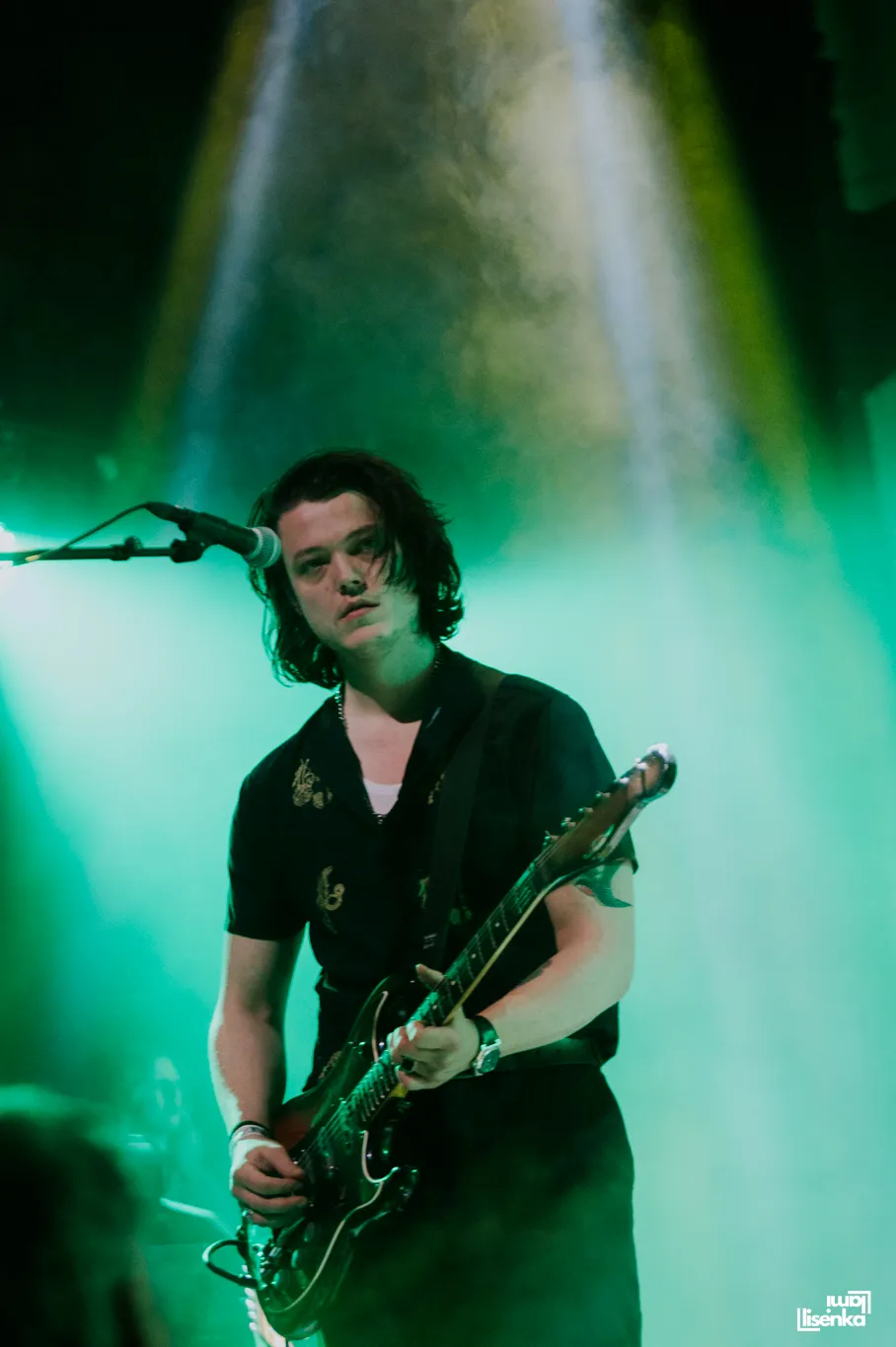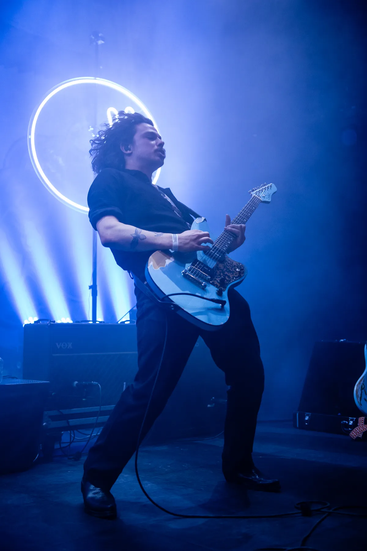 Het indievijftal Marathon komt in het bijna-duister op. Dit zal zeker alleen bij het eerste nummer zijn? Nee dus. Driekwart van de set wordt beschenen door soms maar drie minieme rode pitjes, terwijl we vanuit de organisatie alleen bij de eerste drie nummers vooraan mogen fotograferen. Deze belichting geeft mij flashbacks naar de aarddonkere Battle of Winterfell uit het slotseizoen van Game of Thrones. Zoals de late, great Johnny Cash zong: “And then I see a darkness…“ We turen door die duisternis, hopend ergens een Amsterdammertje te ontwaren.