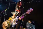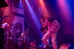 Af en toe vergrijpt men zich aan gitaar en bas, die bespeelt worden alsof het aambeelden zijn. De lichtshow is een hel om bij te schrijven. De latex jas van Eva gaat uit voor trippy stippen mini-jurk, terwijl ze over het podium ijsbeert, balancerend op hakken op een geluidsbox gaat staan met de steun van een verbouwereerde toeschouwer en met haspelhulp voor het verlengsnoer het bargat bestijgt. De twee overige bandleden geven met luchtige keys en subtiele tweede stemmen het geheel een onwerkelijke gelaagdheid die je opslokt in een machtige jaren tachtig flashback. Hier en daar is er een uitstapje naar funk of disco, maar zelfs dat klinkt live veel en veel heftiger dan de studio versies van de nummers. Ga dit live zien om het tot z’n recht te laten komen. (BK)