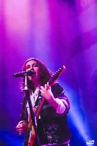 ‘Bowie’s Pressure’ bevat een bevlogen dialoog tussen zangeres en gitarist, wat een tempo- en temperatuurverhoging in de set inluidt. De mic vertikt het tijdens ‘Red Flag Magician’, maar na een vlugge wissel doet de track nog het meest denken aan een musicallied waarbij een karakter uit de schulp durft te komen. Een aantal fans vooraan worden in het zonnetje gezet dankzij hun zelfgemaakte bandshirts, want Hiqpy’s ster lijkt sneller te stijgen dan de merch makers bij kunnen houden. Ze hebben dan ook nog meer één single op de streaming platformen staan, de begrijpelijke afsluiter ‘Something’. Het klinkt wat voorzichtig ten opzichte van de rest van de set, maar dat geeft wel de kans voor de zangeres om het volledige spectrum van haar stem te etaleren. Blij dit te hebben gezien op het overslagpunt naar onmogelijke populariteit. (BK)