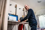 In het pand waar Bram, Luc en Reindert wonen, wonen niet alleen muzikanten maar ook kunstenaars uit andere disciplines. Ontzettend veel kansen om samen te werken, zou je denken! “De verdiepingen mengen alleen niet echt”, zegt Reindert. Luc, vervolgt; “Ik heb hoogstens een keer een concertje gedaan met een zangeres hierboven”. Bram die drinkt nog wel eens een kopje koffie met iemand, of gaat wandelen, maar doet dit meer om het sociale aspect. Reindert voegt toe; “Als huis en plek waar je woont daar gebeuren wel wat sociale dingen, dat is ook een primaire functie, maar er zijn geen grootschalige samenwerkingen voor zover wij weten”. Stiekem was mijn beeld van een grootschalig woon-werkpand met kunstenaars uit ‘alle’ disciplines dus een beetje vertroebeld. Misschien vergeten we soms in ons idealistische beeld van het kunstenaarsleven, dat kunstenaars ook ‘gewoon mensen’ zijn en dus niet altijd ‘aan het werk’. Inspirerend is het echter wel, en verbinding in het makerschap wordt overduidelijk gevonden. Reindert, Bram en Luc kennen elkaar van het conservatorium, en dankzij hun muzikanten ritme zijn zij iedere ochtend samen in de woonkamer. Komt er nog een band met hun drieën misschien? Bram: “We hebben wel bedacht dat we een band met twee bassisten willen. Het heet Modder”. “Hadden wij nou het idee om met Hofners - gitaarmerk - klassieke muziek te spelen?”, vraagt Luc zich af. “Ja!”, zegt Bram, “in mijn nerderige cello periode heb ik bedacht dat het een geweldig idee was om vier vioolbassen te kopen en dan strijkconcerten daarop in te studeren. Gewoon met een plectrum en een mooi galmpje”.