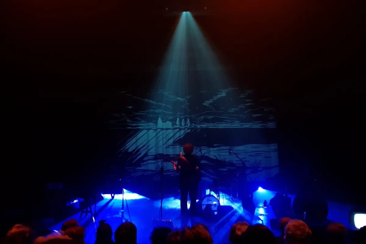 Terwijl het publiek langzaam de zaal instroomt, staat Yildiz Gies met haar rug naar de bezoekers gekeerd op het podium van de Steigerzaal te wachten: gitaar geduldig in de aanslag. Vogelgeluiden vullen de ruimte vanaf band. Een gesproken intro over de ontstaansgeschiedenis van Niemandsland – haar debuut dat ze afgelopen jaar uitbracht – brengt de zaal in de stemming voor wat komen gaat. Gies neemt de bezoekers mee in het onbestemde gebied tussen droom en werkelijkheid — een oord waar verwachtingen vervagen, onzekerheden naar voren komen en de schijnbaar gewone momenten hun diepere betekenis onthullen.