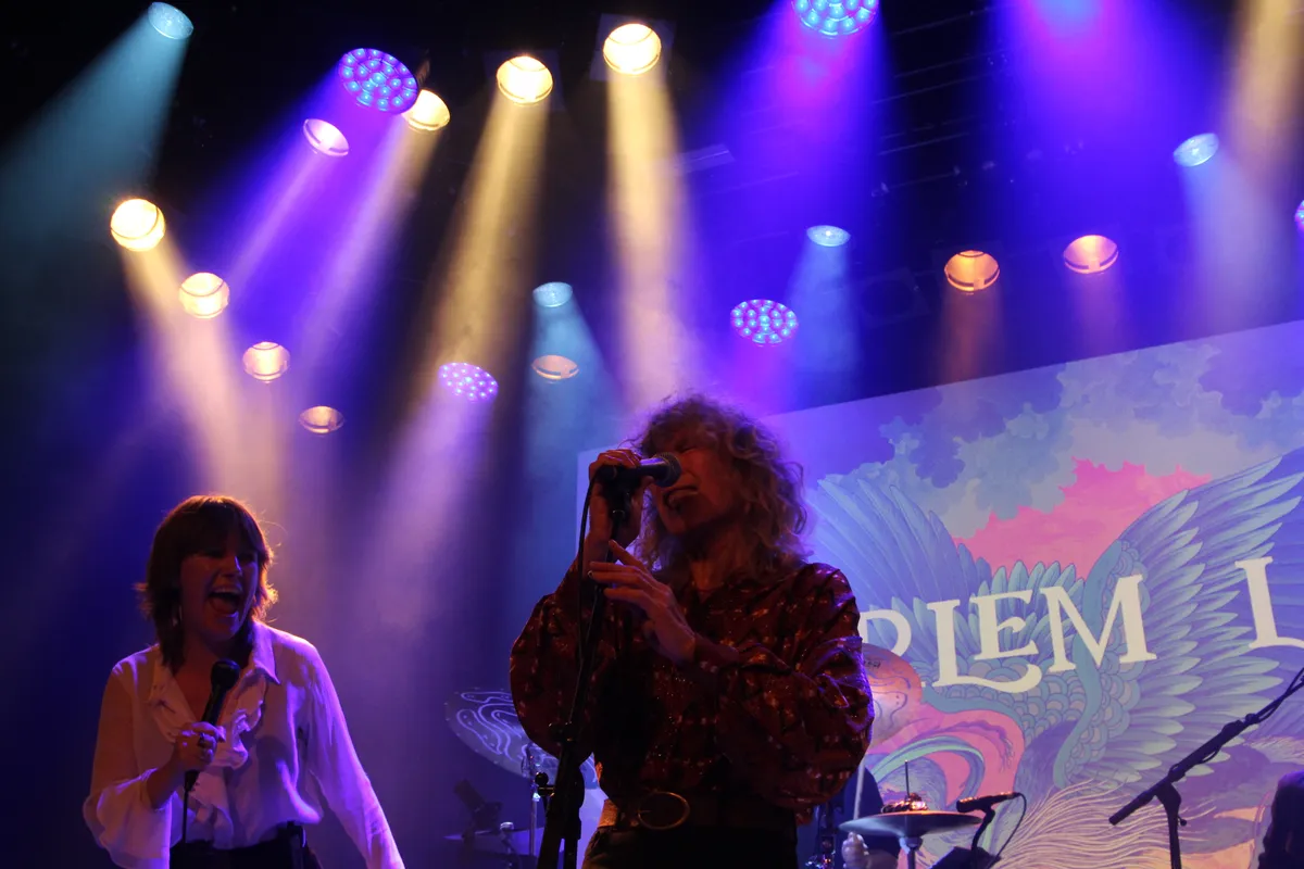 Janne Timmer van Harlem Lake begint met een uiterst kwetsbaar nummer, waarbij ze zichzelf begeleid op de piano. Het is de ouverture van wat nog gaat komen. Lichten uit en een spot gericht op de frontvrouw die met kraakheldere stem Dear Times in een stille zaal laat horen. Na dit uiterst rustige nummer komt de rest van de band op die allen een introductie krijgen. De spanning is voelbaar, want Harlem Lake heeft voor het optreden aangekondigd dat een Nederlandse muzieklegende in de persoon van Tineke Schoemaker enkele nummers meedoet. Als het moment daar is, vertelt Janne over de ontmoeting met Tineke die ze heeft voor de pandemie. Een introductie is niet nodig want Tineke Schoemaker maakt deel uit van Barrelhouse en die band is nog steeds actief en bestaat inmiddels alweer vijftig jaar. Eigenlijk gaat het dan echt plankgas als Tineke meedoet, waarbij Tineke zelfs de leading vocals voor haar rekening neemt en waar Janne de backing vocals doet. Met Worrying You Off My Mind speelt Harlem Lake een gospelversje. Voor ontspanning is ruimte, want het valt zowel Janne als Tineke op dat de dames goed zijn vertegenwoordigd in de zaal. ,,Vind je ook niet dat er veel mooie dames in de zaal zijn?”, vraagt Janne aan Tineke. Voor al die dames speelt Harlem Lake 99 Pounds. Dat nummer is oorspronkelijk van Ann Peebles, maar is ook dikwijls gespeeld door Barrelhouse.
