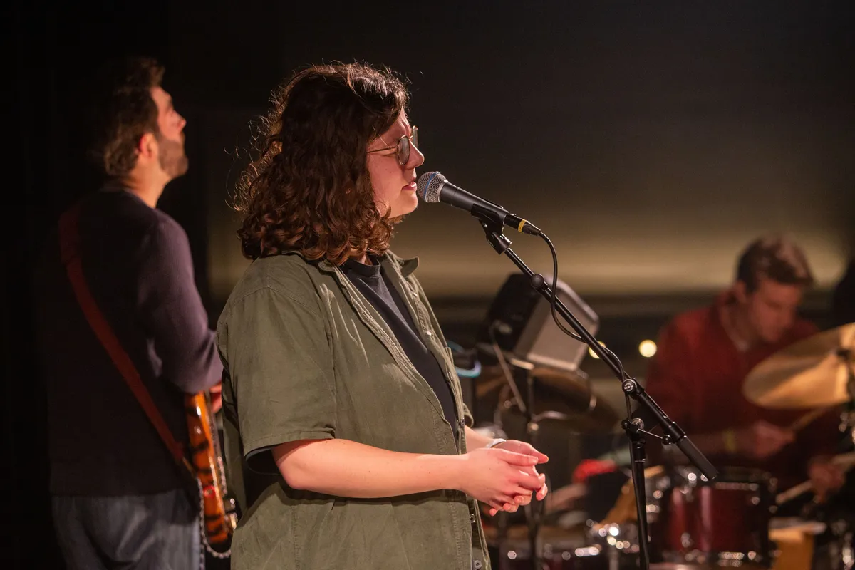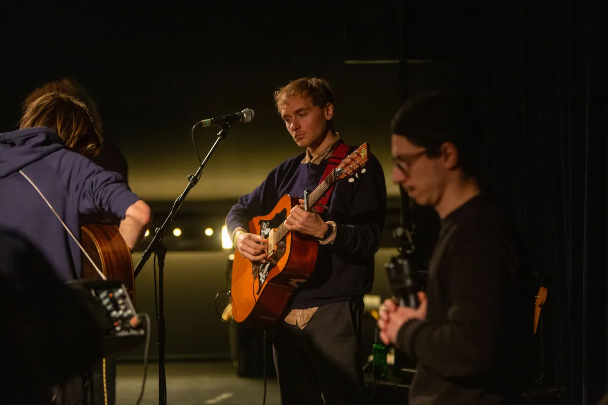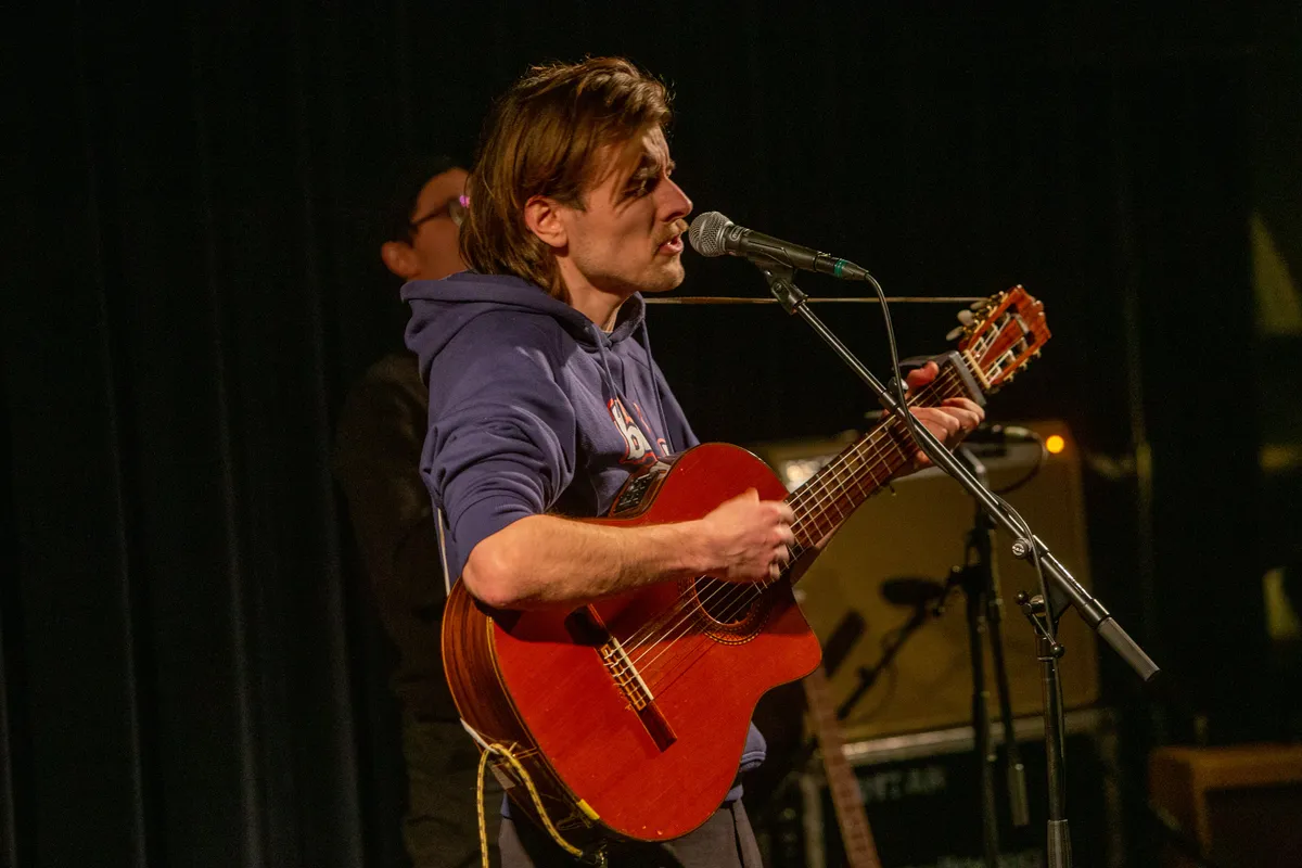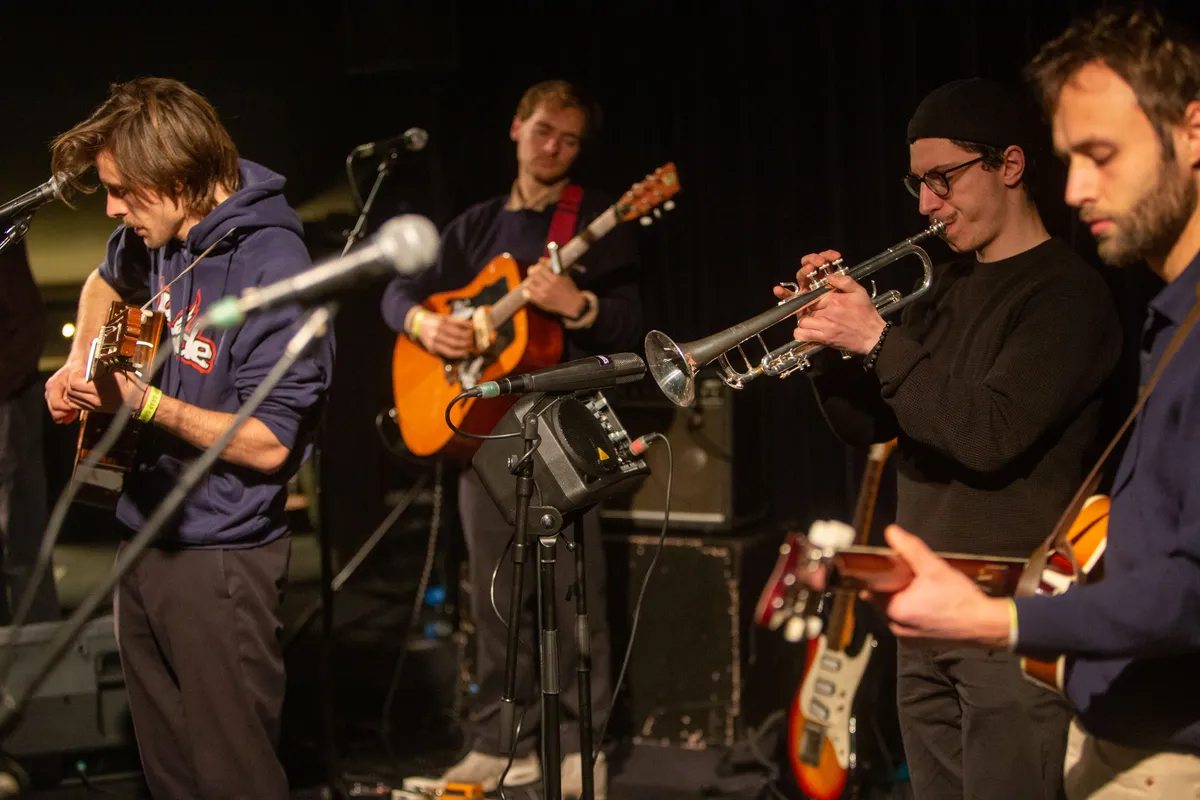 Het publiek krijgt de opdracht zich weer te begeven naar de cinemazaal, want daar is het concert van folkartiest Levi Boon. Het is even haasten, want in de kleinere zaal wil je natuurlijk wel een goed plekje. Het is even een switch naar de rustige muziek van Levi Boon, en daardoor is het wel fijn dat dit concert weer in de toch rustigere cinemazaal plaatsvindt. Boon staat van alle acts het meest zelfverzekerd op het podium, en dat terwijl ze sinds 2023 pas muziek uitbrengt.