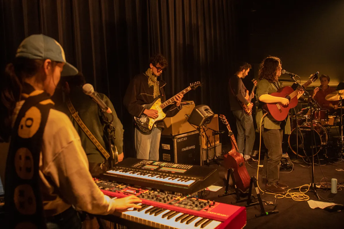 De bovenverdieping van de Melkweg is overvol, want Stichting GRAP organiseert daar in samenwerking met Melkweg de Nieuwjaarsshow. Het Amsterdamse showcase festival vindt 6 januari voor de zoveelste keer plaats, maar is haar charme nog niet verloren. Vijf acts aan het begin van hun carrière laten deze avond hun muziek horen.