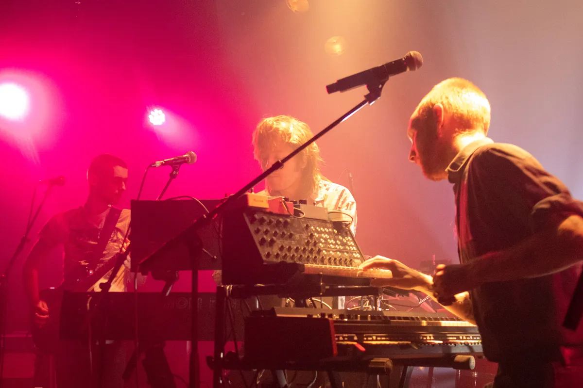 Aangekomen in de ruimere upstairszaal ervaar je is meteen een andere energie. Want, wat een contrast is Astronaut met de door energie gedreven synthwave band Dorpsstraat 3. Met een conventionele opstelling van een band (drums, bas en gitaar) aangevuld met twee synthesizers heeft Dorpsstraat 3 een unieke sound te pakken, wat duidelijk aansluit bij het publiek. De eerste voetjes gaan van de vloer, en dat bij de krachtige zang van de frontman met existentiële teksten als “Het einde is nabij”, en “Ik voel me nauwelijks nog een mens”.