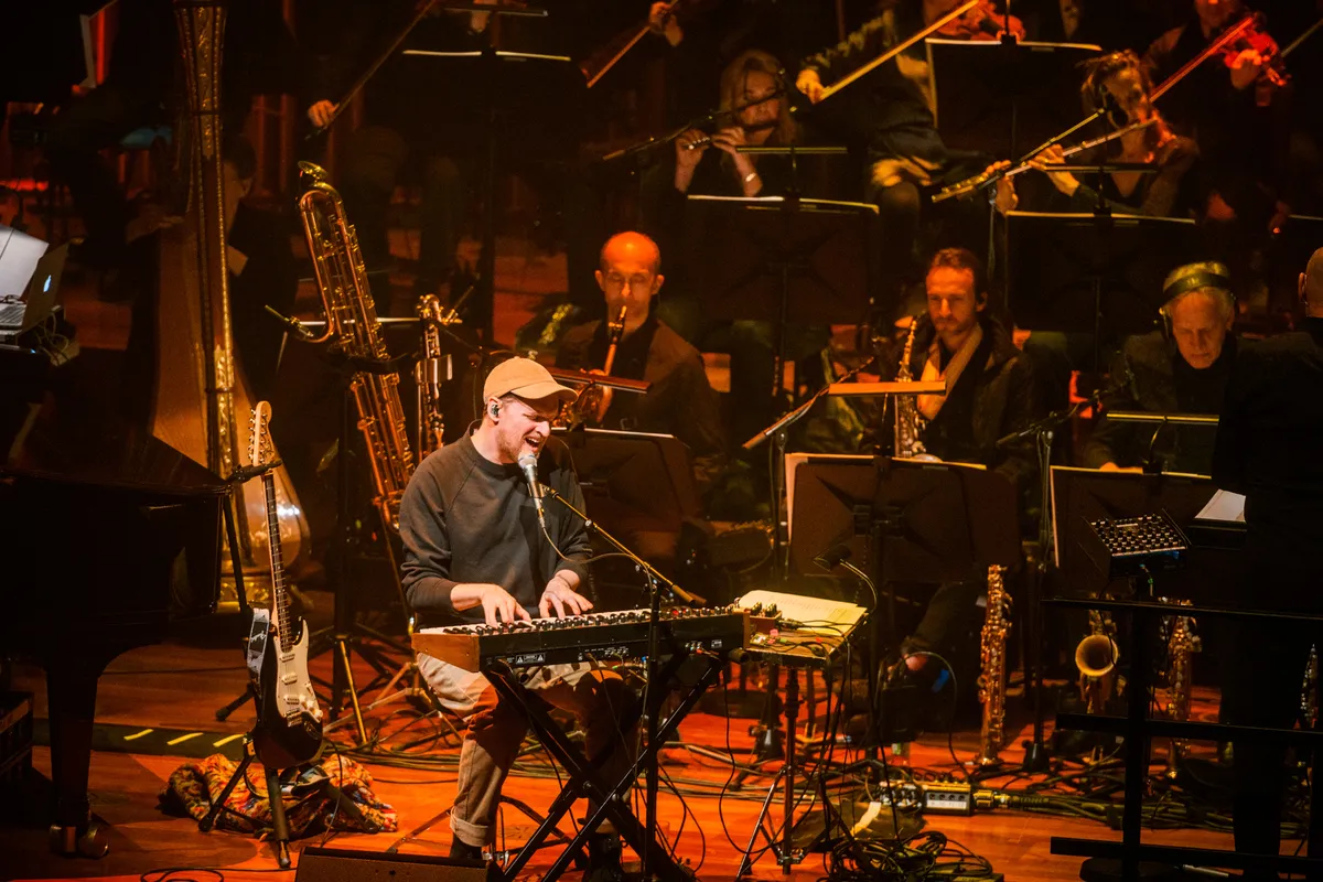 Terwijl het publiek op zijn plek gaat zitten komen er steeds meer leden van het orkest het podium op om hun instrumenten te stemmen. De klanken van blazers en strijkers vullen de zaal wat een relaxt gevoel geeft. De rust en professionaliteit dat het orkest uitstraalt, wat tijdens het concert duidelijk wordt, overweldigt Sohn. De eerdere samenwerking in 2019, voor Amsterdam Dance Event, heeft op hem grote indruk gemaakt.