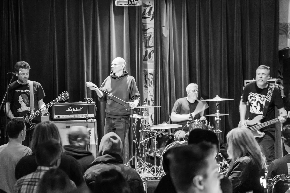 Dan is het aan Third Ego om een brug te bouwen tussen STiCKFiGS en Cooper. Zowel letterlijk als muzikaal. Het kwartet klinkt meer als een rockband dan een volwaardige punkact. Begrijp het niet verkeerd, Third Ego is weldegelijk gegrond in punk. Zanger Jean Morreau heeft een Ian MacKaye achtige attitude en staat zonder micstand met beide benen uit elkaar in een soort gevechtstand richting het publiek. In de aanval met een microfoon vastgeklemd in zijn handen. Stevige ruimtelijke baslijnen worden op ons afgevuurd, terwijl gitarist Jeroen Blom ons op riffs en een paar sporadische solo’s trakteert. “We hebben niet zoveel te zeggen vanavond, de muziek spreekt voor zich” licht Jean toe. Eigenlijk is Third Ego niet meer dan een prima tussendoortje. Een mengelmoes aan stijlen zorgt ervoor dat een eigen smoelwerk ontbreekt.