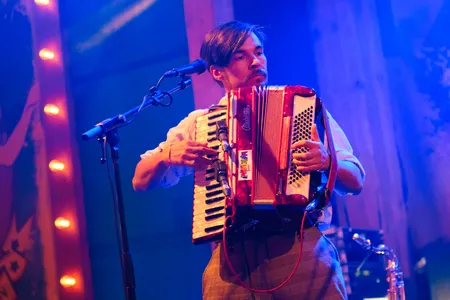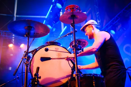 Dat punk niet alleen hoeft te bestaan uit scheurende elektrische gitaren bewijst Hanba! in de Restolounge. Gewapend met banjo, drum, accordeon en tuba zetten ze vanaf moment één de tent op zijn kop. Je hoort het vaker dat 'stilzitten geen optie is', maar in de eettent gaan er letterlijk mensen van de tafels af om te dansen bij deze Polen. De band zelf huppelt ook - als het instrument dat toestaat - van de ene kant naar de andere kant van het podium. Na veertig minuten springen, stampen en raggen is er zelfs nog energie over voor een heuse circlepit, iets wat natuurlijk niet mag ontbreken bij een goede punk show.