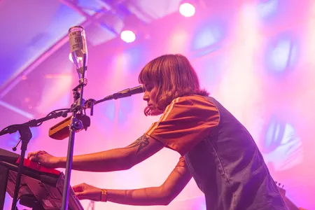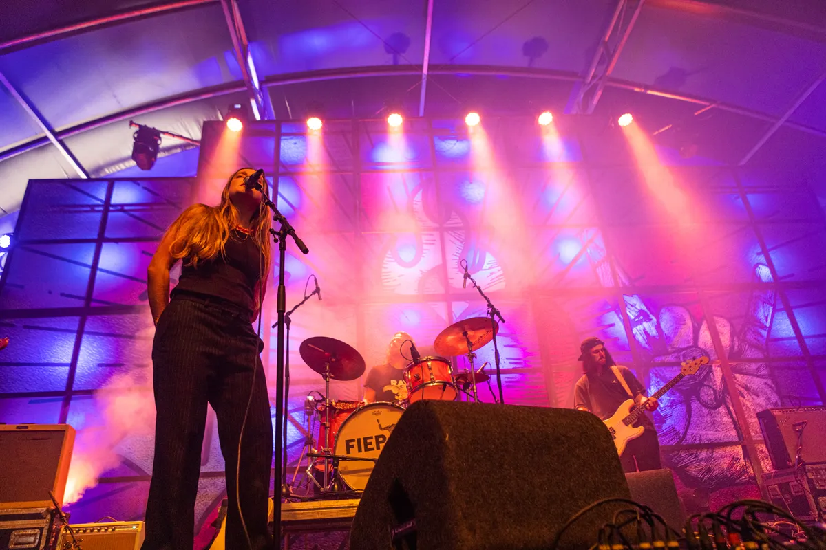 Misschien ken je haar nog niet, maar FIEP maakt energieke indiepop met postpunk-invloeden en praatzang-elementen en straalt een hoop potentie uit. FIEP is het alterego van Veerle Driessen. In januari stond ze al op ESNS, twee weken terug bracht ze haar debuut-ep 77 Strokes Croft uit en vandaag mag ze samen met haar band laten zien wat ze in haar mars heeft in de Luxor op Paaspop. De gitaren moeten nog eventjes worden gestemd, maar daarna is FIEP er klaar voor en trapt ze af met ‘Birthday Party’. Het nog onuitgebrachte nummer begint rustig, Driessen zingt met haar handen op haar rug en de band lijkt nog wat zenuwachtig te zijn.