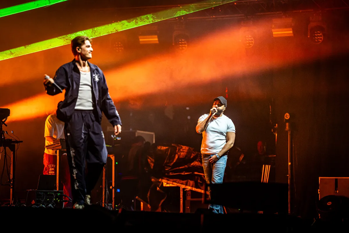 Tegelijkertijd blijft hij ook zijn hiphop-roots aanstippen met ‘Tantoe Lekker’ en gastoptredens van Milolaathetlukken (‘Knaldrang’) en Mula B (‘Als Ik Ga’), al is het vooral de poppy clubsound die deze set de boventoon voert. Die keuze werkt: de Apollo staat het hele uur van voor tot achter vol met mensen die minstens twee liedjes woord voor woord kunnen meezingen.