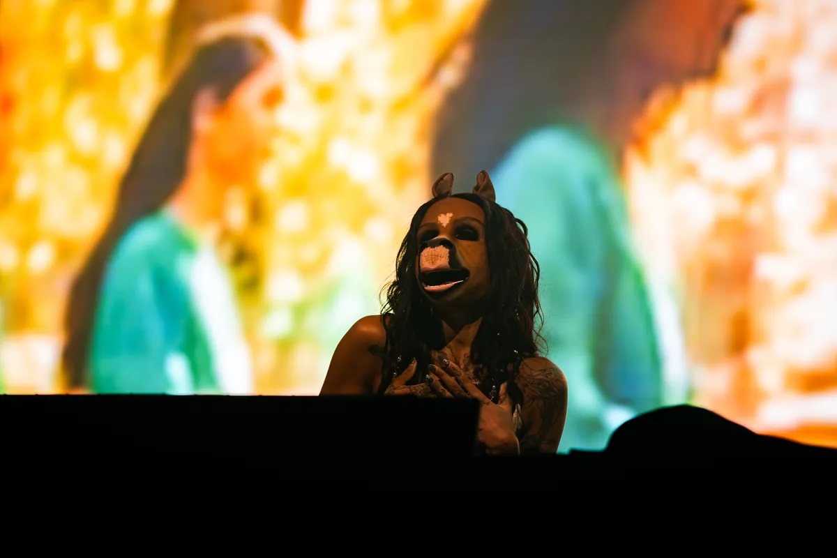 Stel je voor: we staan in een Schijndelse stal. Een kleine blik om ons heen toont dat iedereen flink aan het kauwen is. Op wat hooi, nemen we dan maar aan. Iedereen staat met zijn armen in de lucht, en we kijken allemaal voor ons uit, naar het mooiste paard van stal die luistert naar de naam ‘horsegiirL’. We zien lange, bruine manen en een smalle bek - pardon - ‘mond’ waarmee ze door een lang plastic rietje water kan drinken. Achter haar zien we een groot scherm met visuals en veel spirituele affirmaties: “You only live once, trust the rhythm of the earth”. Klinkt dat als een koortsdroom? In de Phoenix is het de realiteit en dus gaan we hop hop, in galop naar misschien wel de meest bizarre act van deze Paaspop-editie.