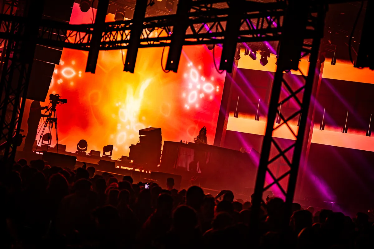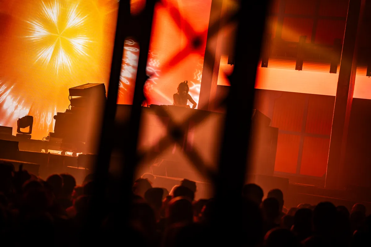 horsegiirL dus, een Duitse dj die beweert dat haar echte naam ‘Stella Stallion’ is (dat wagen wij te betwijfelen) en zich identificeert als half mens, half paard. Haar masker, dat voor een groot gedeelte uit protheses bestaat, slingert ons direct de ‘uncanny valley’ in. Dit afdoen als een gimmick? Daarmee doe je paardenmeisjE dan weer tekort, want de prettige gestoordheid van dit alles is een combinatie van haar looks, visuals, en zéker haar set. Dat is een lappendeken van techno, hyperpop, breakbeats, hardstyle, jersey club en trance waarbij haar settijd van een uur en een kwartier horsegiirL min of meer dwingt om niet lang te blijven stilstaan bij één genre.