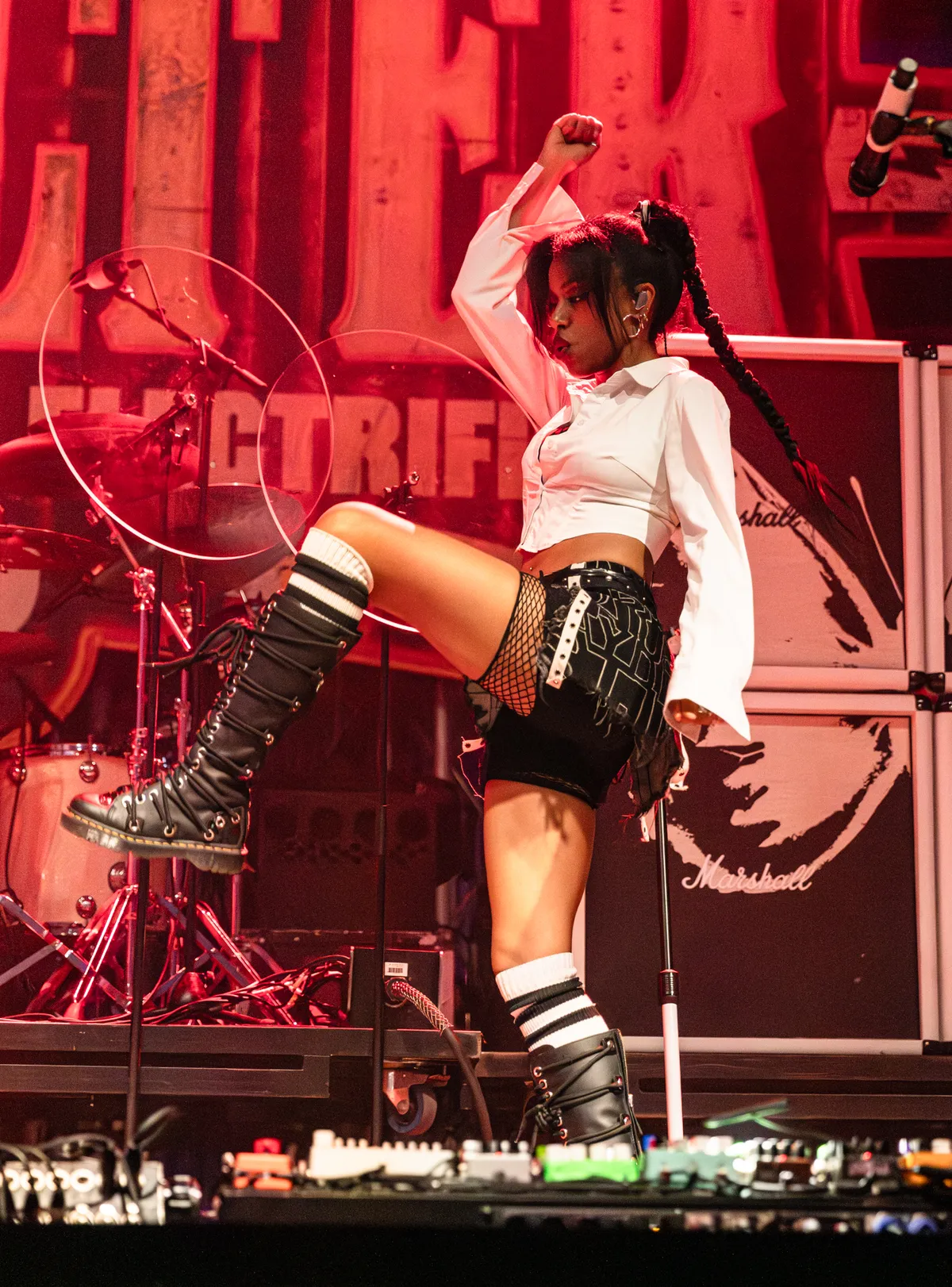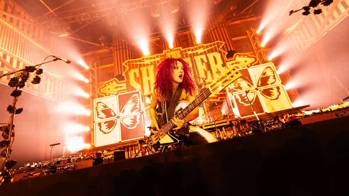 In The Shelter op de zondagavond zien we een bijzonder totaalplaatje: een vrouwelijk frontduo met mooie gitaren, grote boxen met zwartwitte vlinders, microfoonstandaarden met zwarte rozen eraan. Maar ook Amy Love en Georgia South zelf hebben een stage presence waar je ‘u’ tegen zegt; zij maken indruk met hun lange, rondzwiepende vlechten én felrode krullen, de prachtige outfits waar veel tijd en liefde in is gestoken, en kraakheldere stemmen: Nova Twins zouden zo kunnen doorgaan voor ware popiconen.