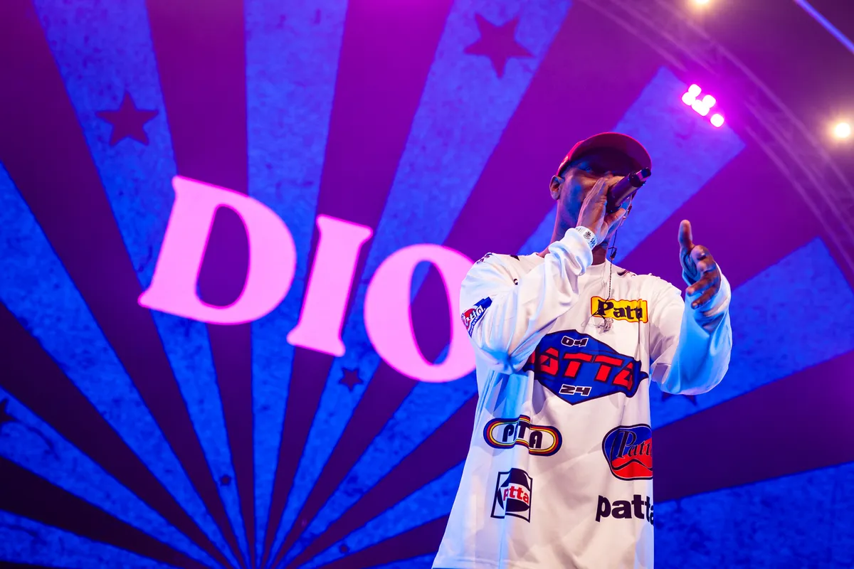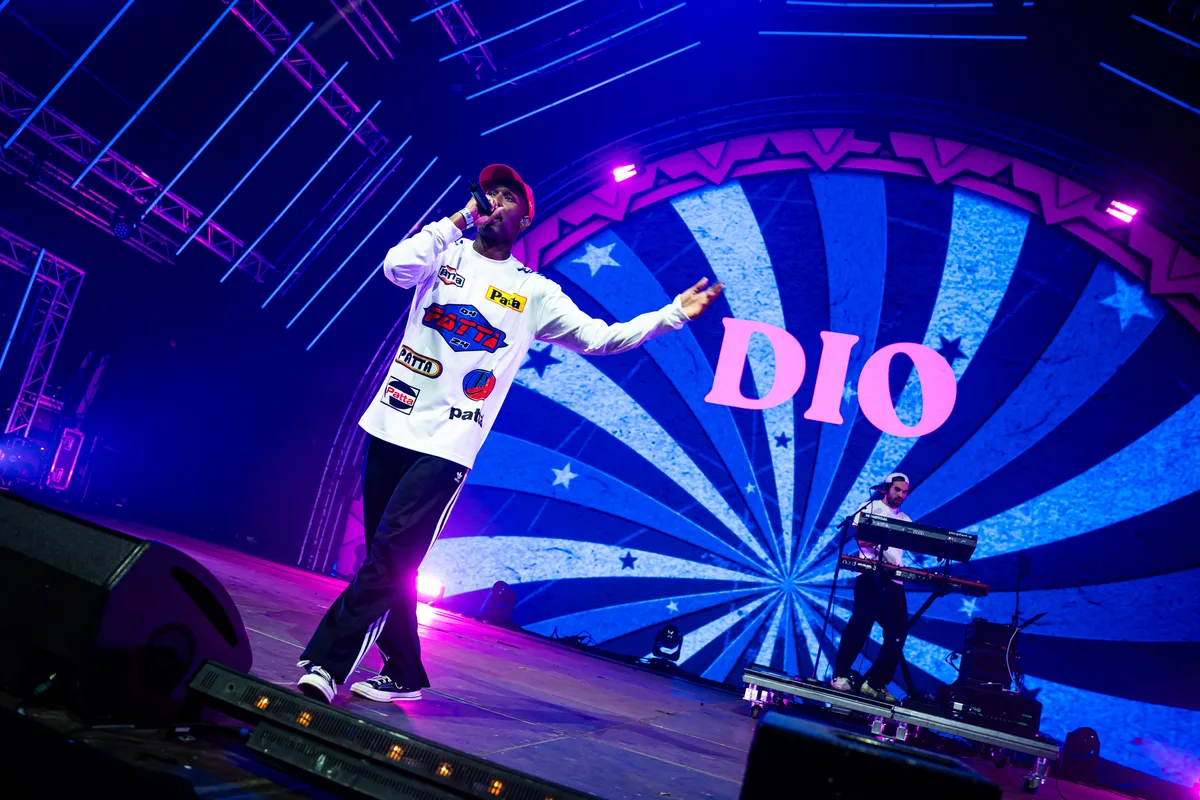Dat snapt Dio zelf ook, die opent met ‘Aye’ en maakt daarmee direct duidelijk dat hij op het technische vlak nog altijd een van de begaafdste rappers is van Nederland. Het hoge tempo van het nummer is voor hem geen bezwaar, iedere line gaat smooth en er wordt gedurende deze show van 45 minuten geen enkele bar (en dat zijn er nogal wat) vergeten of naast gezeten. Maar de handjes van daarnet verraden wel al dat het voor Dio een lastige klus is om iedereen net zo hyped te maken voor zijn nieuwe materiaal. Single ‘Laatste Keer’ met producer Trobi is nog maar net een paar maanden uit, is een fijne house-meets-hiphop plaat, maar gaat pas los als Dio oproept tot een sit-down. De planken trillen, Dio ziet het met een grijns aan: "Misschien moeten we nog een beetje inkomen, het festivalseizoen is pas net begonnen hè?”.