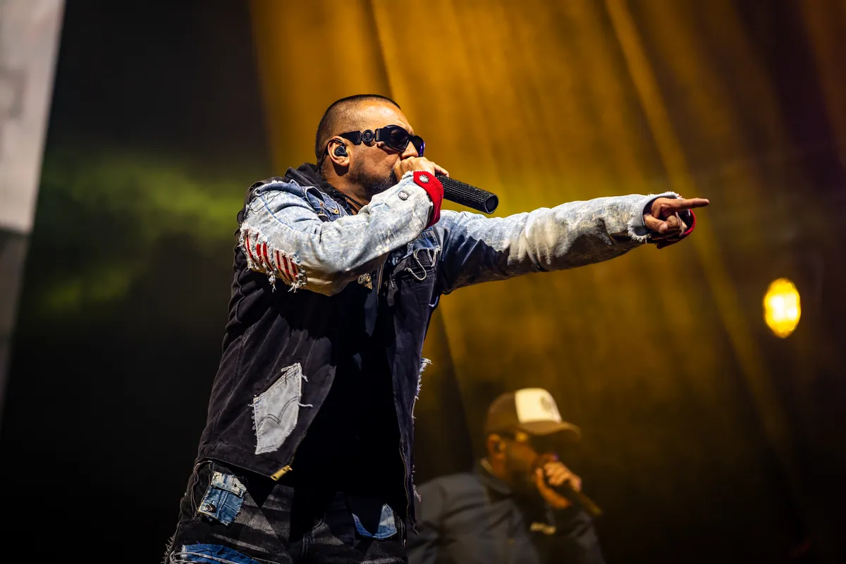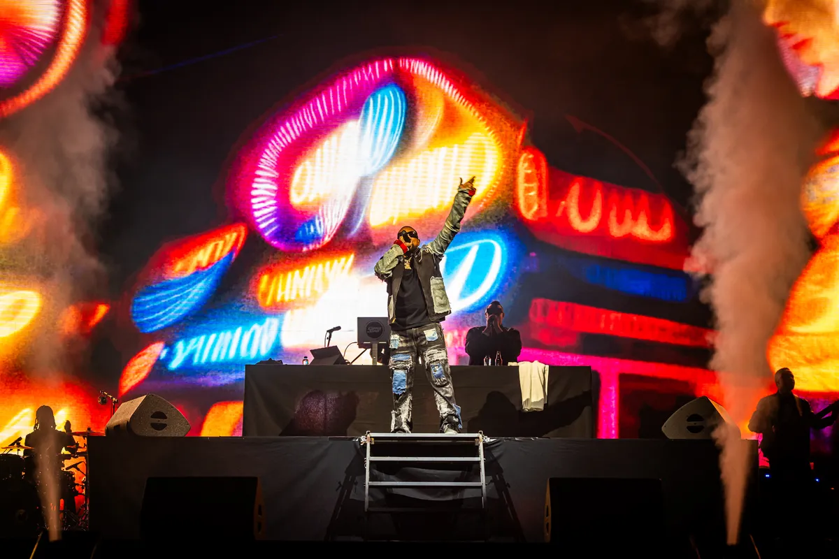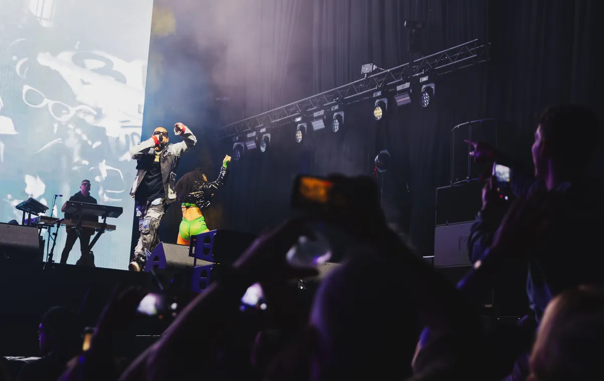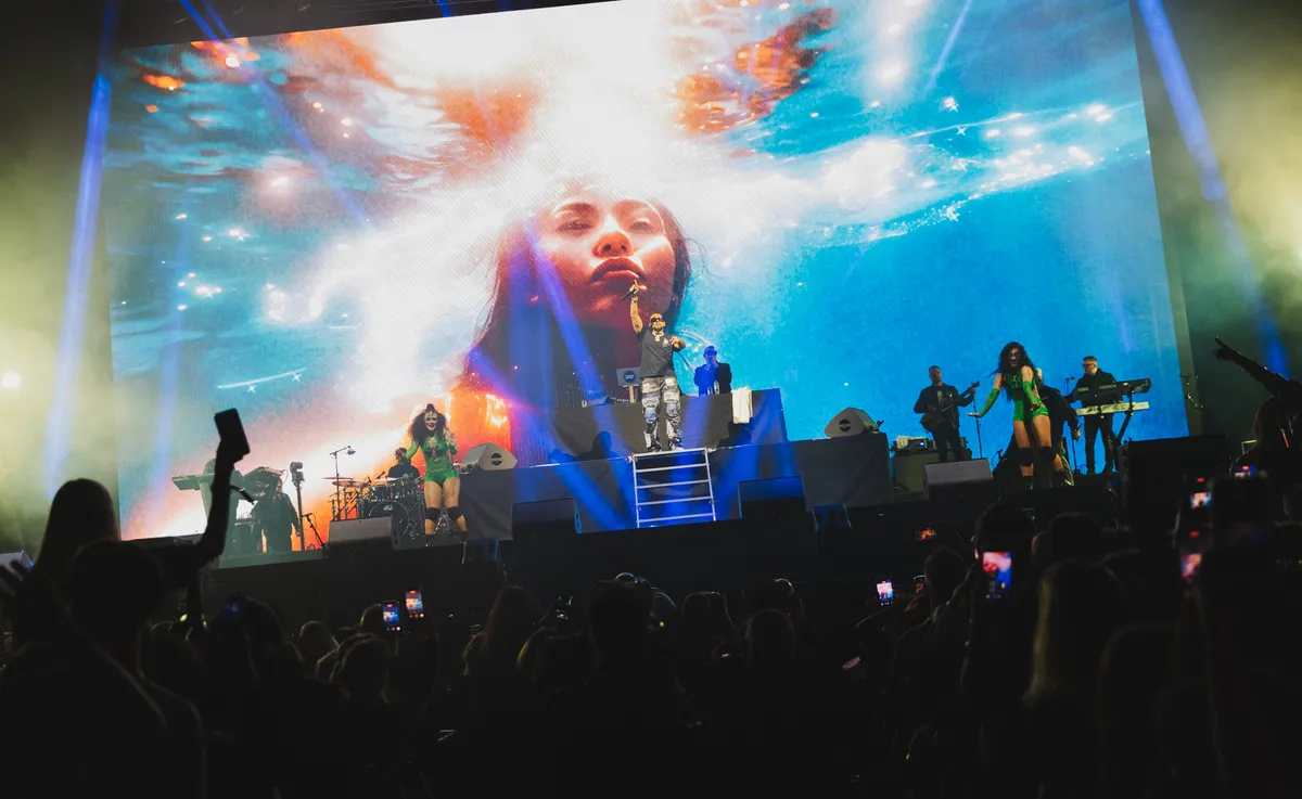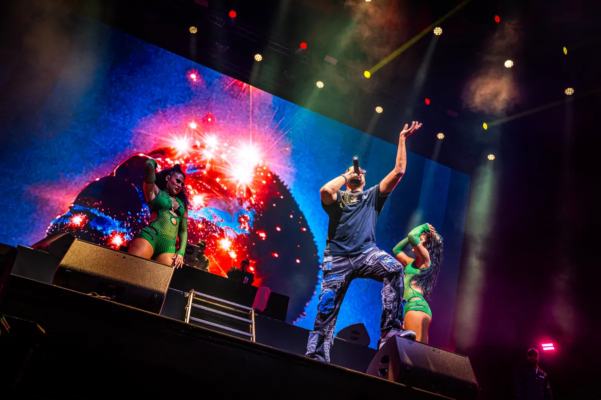 Want deze show draait niet om kijken, maar om herkennen. Wat volgt is een aaneenschakeling van hits: ‘Get Busy’, ‘Got 2 Luv U’ en later ook zijn cover van ‘Cheap Thrills’. Het recept is al twintig jaar hetzelfde: opzwepende dancehall en reggae fusion met stuiterende riddims en Sean Pauls kenmerkende half-gezongen, half-gerapte flow. Op het grote scherm domineren videoclips vol vrouwen, auto’s en bling; alleen op de zijkanten zien we af en toe de man zelf en zijn twee danseressen, die grotendeels verdwijnen in het visuele geweld. Maar eerlijk: het maakt nauwelijks uit. Dit is een feest dat zichzelf draagt.