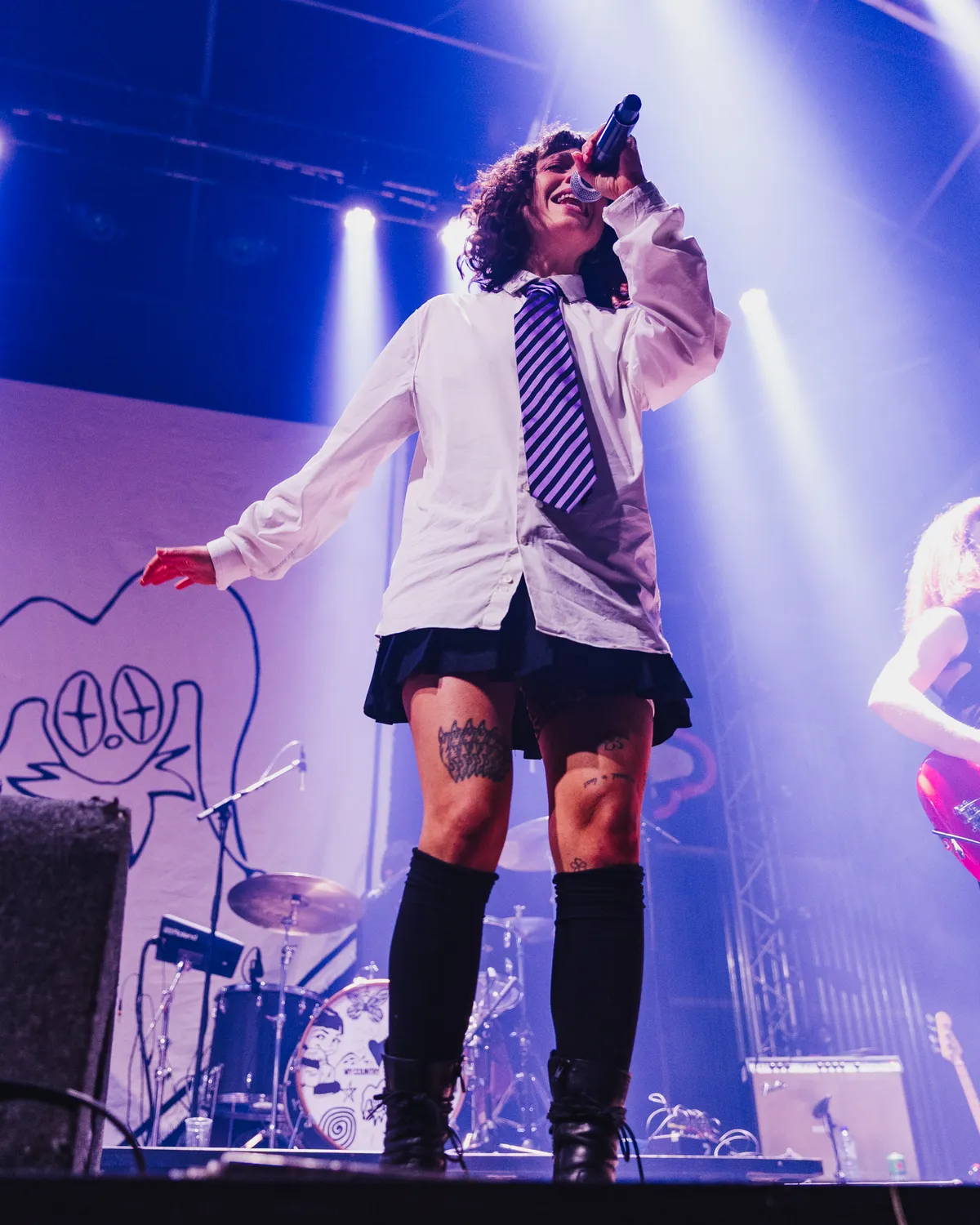 En dan als laatste, nóg één keer 'Vrijheid, Gelijkheid, Zusterschap', met een kleine waarschuwing dat ze dat in de komende festivalzomer niet twee keer gaan doen, en mensen gewoon op tijd moeten komen. En dan: “FLINTA* to the front! Heteromannen to the back!” Zelfs de moshpit gaat precies zoals zij het wil, belangen voorop.
