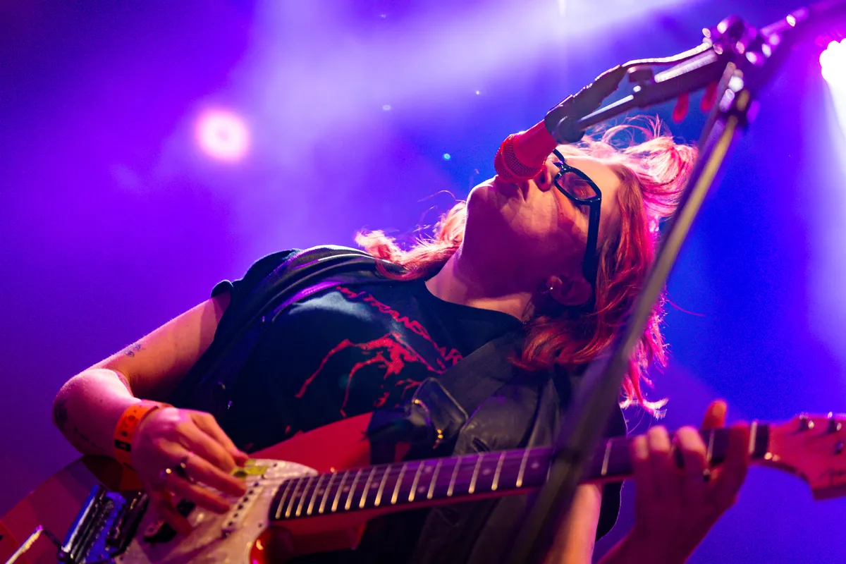 SPRINTS doet erg z’n best om het publiek mee te krijgen maar moet het vooral hebben van hun frontvrouw Karla Chubb, die de show met charme en Ierse droogte aan elkaar praat en tussendoor gewoon even recht door het publiek loopt en een wit wijntje haalt. Ze is vrij duidelijk: er moet een moshpit komen (“Do you know what happens at a rock show?”), iedereen moet zakken, er moet een circlepit komen, er moet gecrowdsurfd worden. Voor het oog een succesvolle show, voor het oor minder interessant.