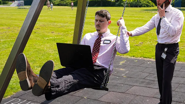 Met keurige overhemden aan en stropdassen om schommelen ze of gaan ze quasi-ernstig van de glijbaan af, laptop op schoot. SPOKEDIER en Koenraad spelen druk-druk-drukke mannen met gewichtige kantoorbanen, met telefoongesprekken en Excelbewerkingen die niet onderbroken mogen worden, maar wel mannen die hun speelsheid behouden hebben. De vooraankondigingen en cover van hiphopduo Tenrek op social media zien er gelikt uit. Waarom die speeltoestellen? De vandaag verschenen single van Rapper SPOKEDIER (Jacob Frank Noordegraaf) en producer Koenraad (Tom Koenrades) heet ‘Buitenspelen’. De ik-figuur probeert daarin de existentiële crisis en verdriet van bijvoorbeeld een relatiebreuk (“die break-up was wel even chips”) te verdringen door “gewoon weer even buitenspelen, voor heel even,” bijvoorbeeld “gaten graven in de natte grond”. Nostalgisch denkt hij terug aan de idylle van zijn jeugd, en dat op een opvallend vrolijke beat. Nu maar hopen op een vervolg als Paradise regained waarin alles goedkomt.