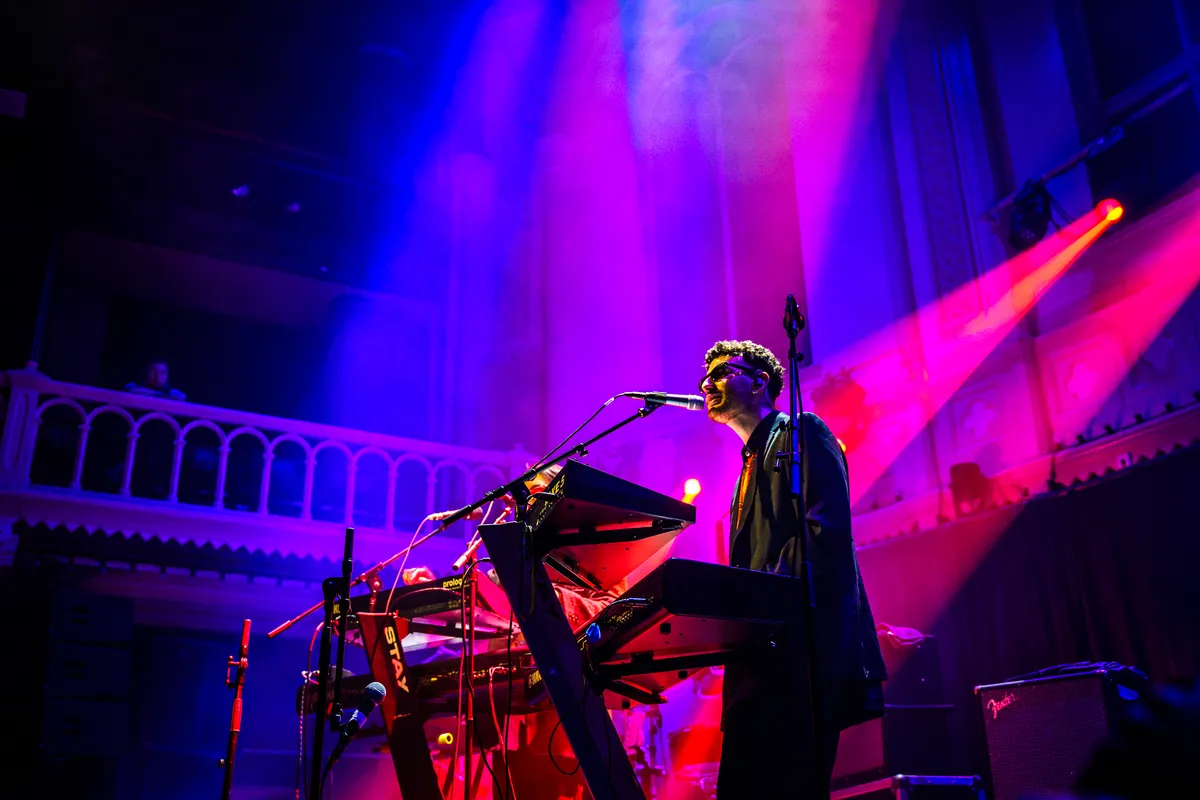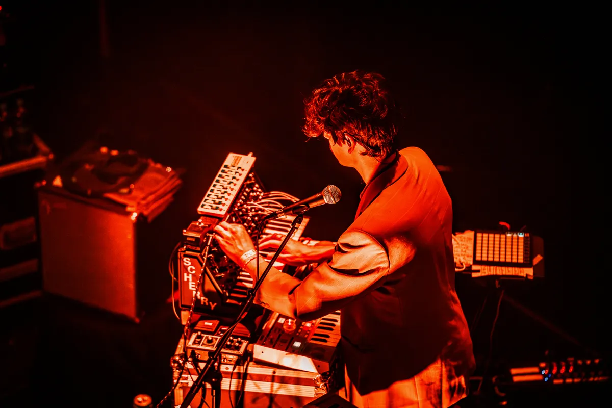 Later blijkt dat er technisch iets niet lekker helemaal lekker is gelopen. De toetsen doen het blijkbaar niet zoals ze het eigenlijk moeten doen, en aan het einde van het nummer roept de toetsenist opgelucht: ,,Het is gefixt.” Niet dat iemand het doorheeft. Hij tovert ondertussen een baslijn uit zijn Korg alsof hij in een club een avond aan het opbouwen is en perfect aanvoelt wat de zaal nodig heeft.