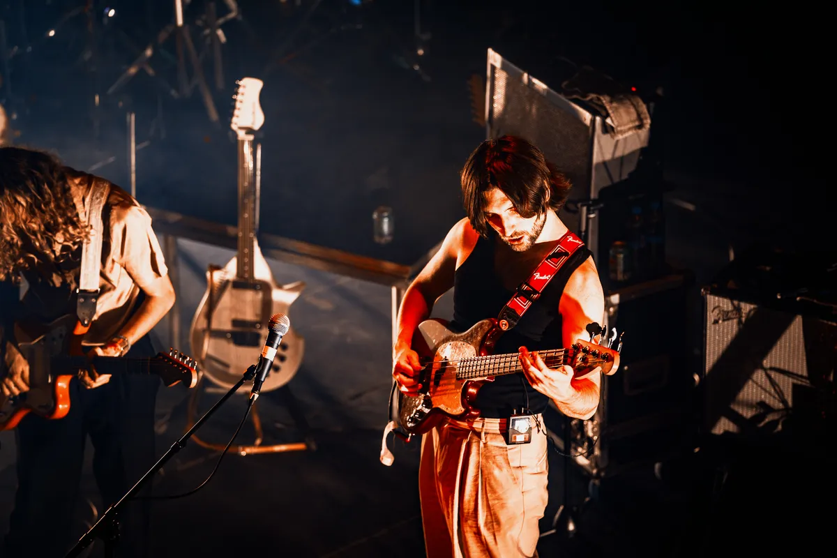 Nog voor de hoofdact de boel komt claimen, zet KAGAMI de zaal in de juiste versnelling. Lucas Sim en Rotem Gerad staan erbij alsof ze net uit een Wong Kar Wai-film zijn gestapt: oversized pakken, kleurrijke dassen en een grote zonnebril.