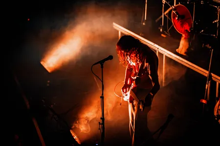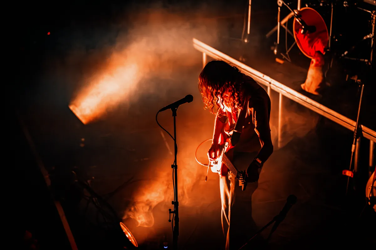 En ondertussen gebeurt op het podium precies wat je hoopt bij een band die dit soort muziek maakt: de bassist en gitarist vinden elkaar, dansen samen op het podium alsof het de normaalste zaak van de wereld is, en die energie werkt aanstekelijk. Het publiek begint zich op z’n gemak te voelen en er wordt meer en meer gedanst.