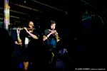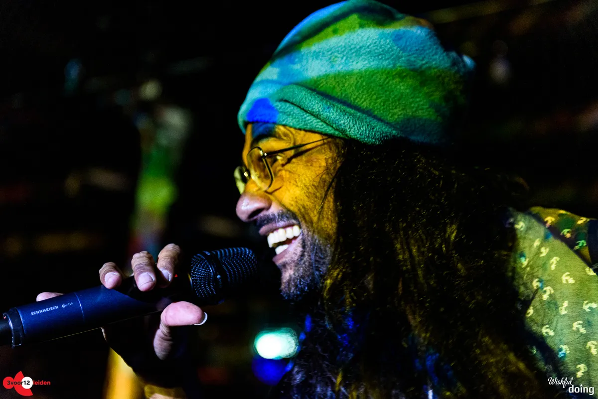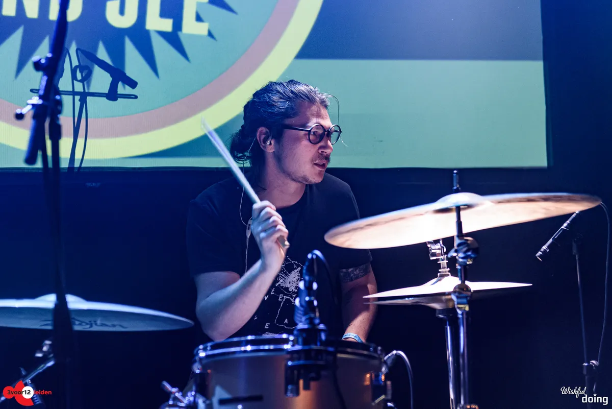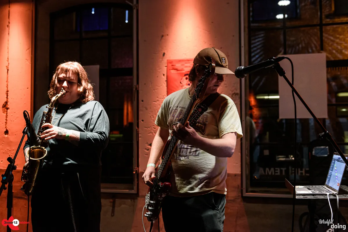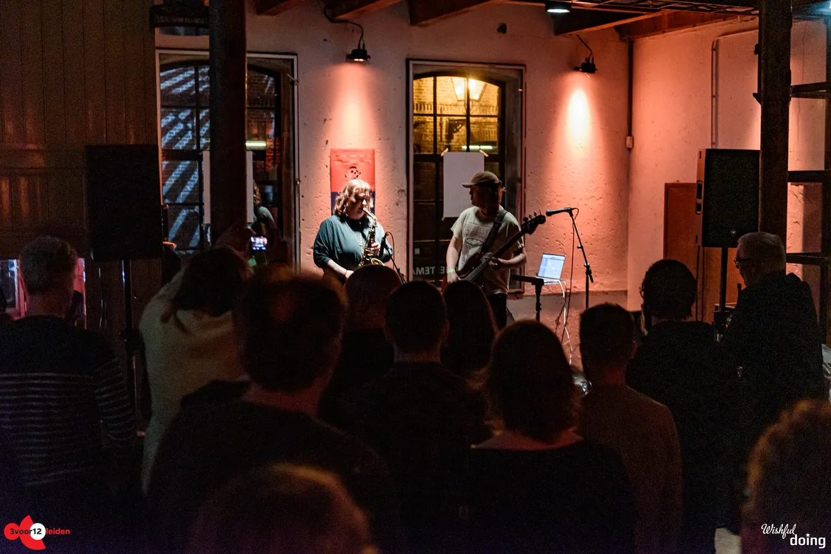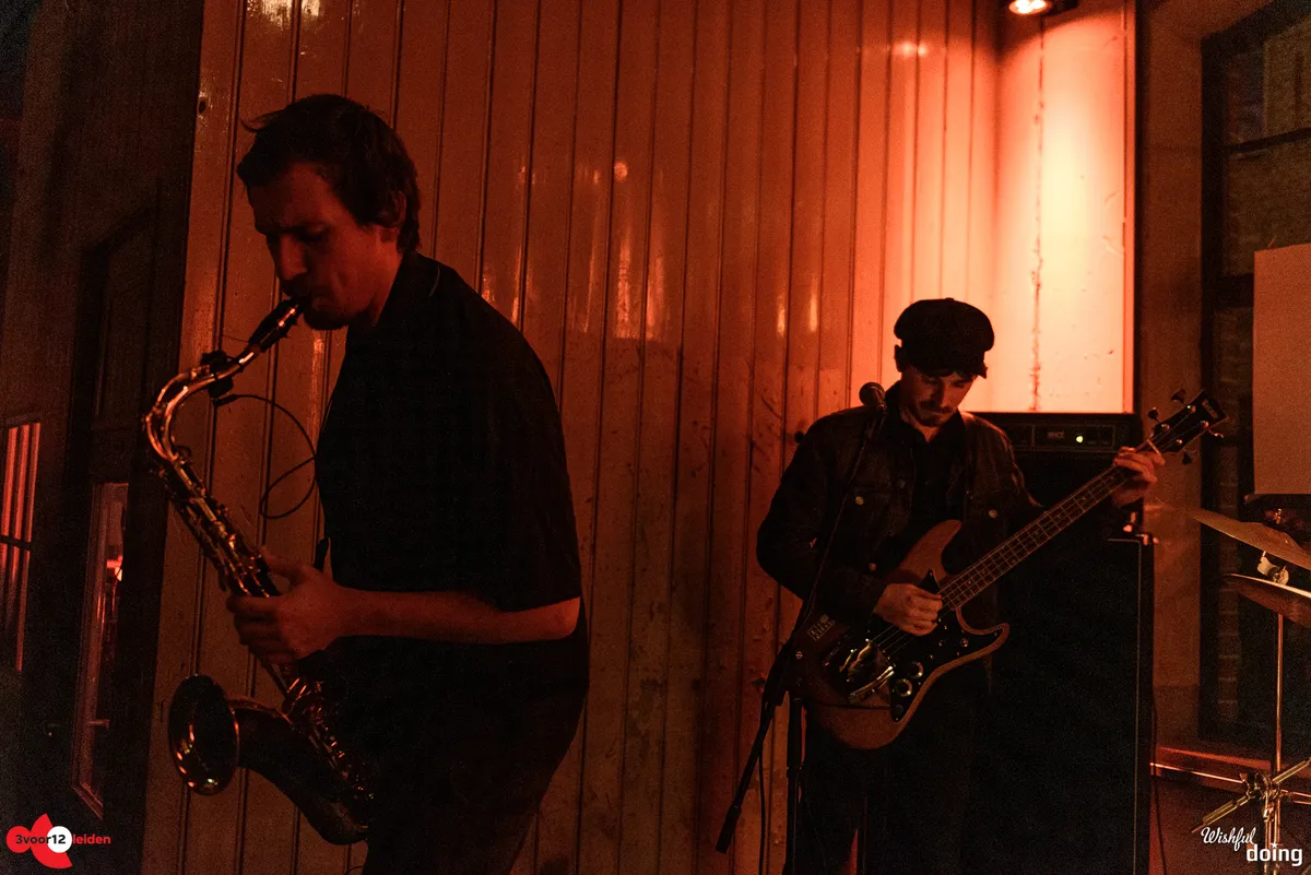 Soms wordt er gas teruggenomen met een jazzy pauzemomentje, dan neemt een zware drummachine of zelfs een piano uit de computer het voortouw, en dan gaat er weer een dikke laag distortion over de bas heen. Het blijft gissen hoeveel improvisatie er in de act zit, want de set loopt soepeltjes en de zonnige uitstraling van de muzikanten verzwakt geen moment. Met een half uur is het optreden sneller voorbij dan je lief is, want het voelt alsof het tweetal nog meer in de koker heeft zitten. Hopelijk strijken ze vroeg of laat opnieuw neer in Leiden.