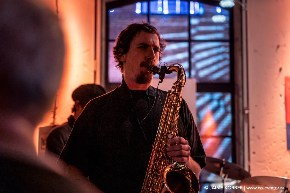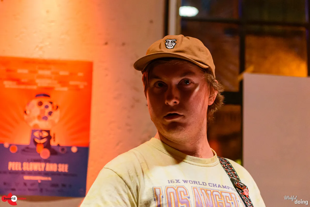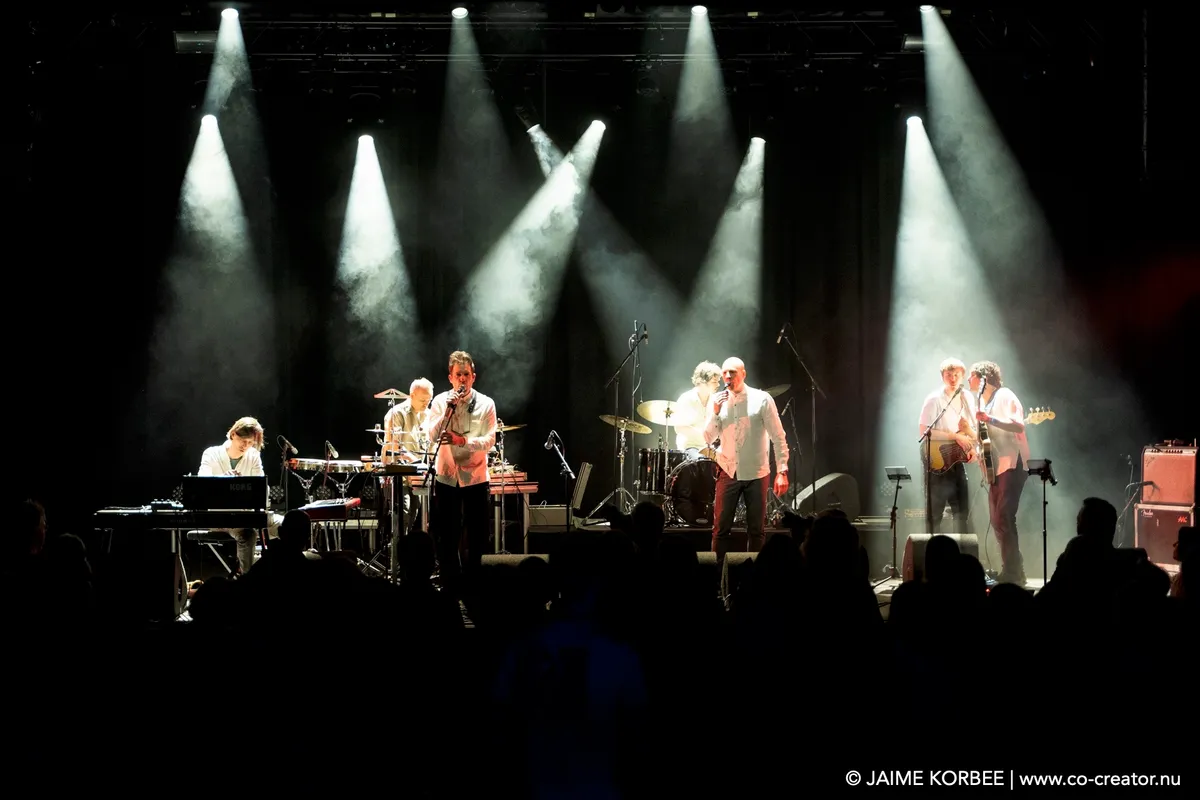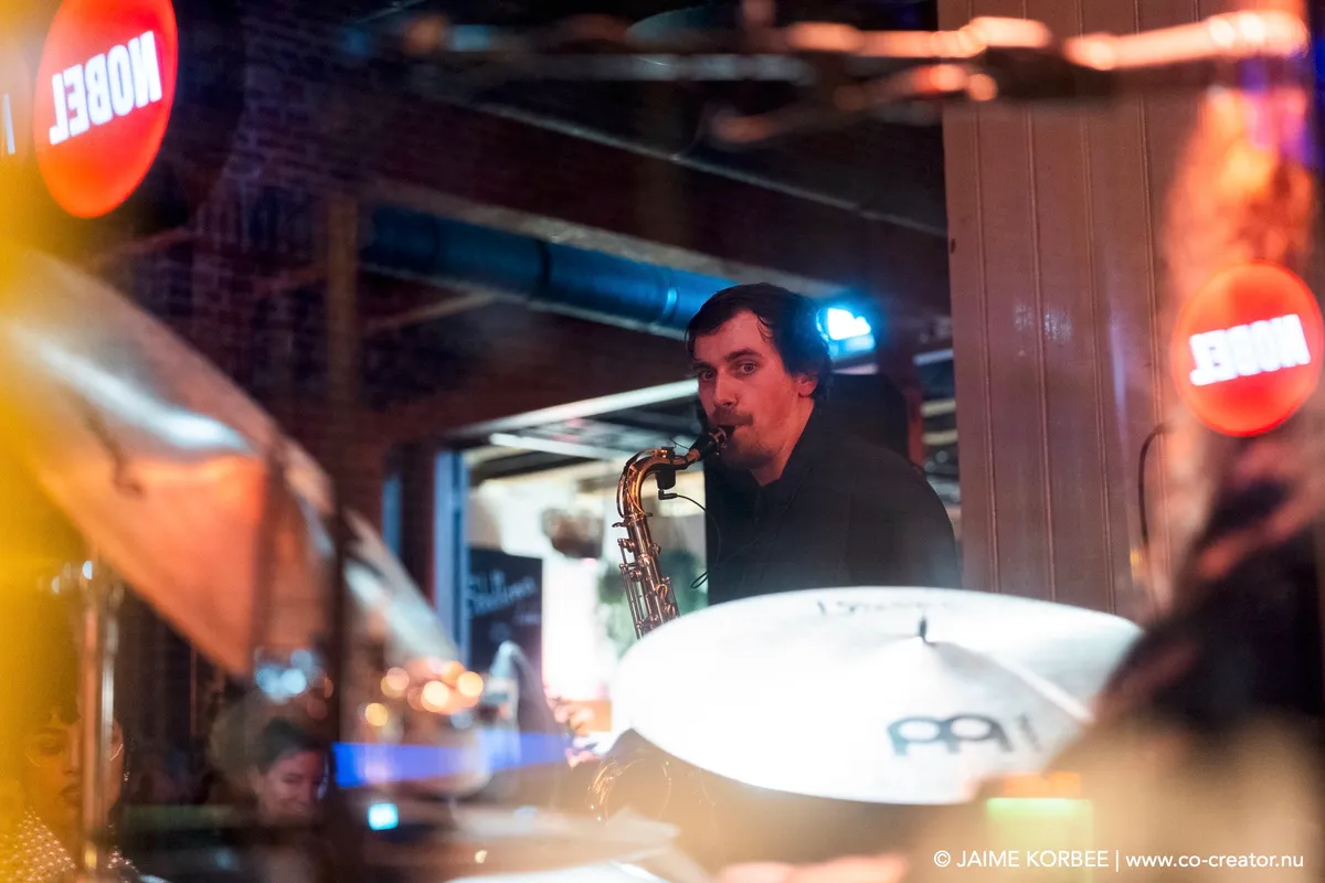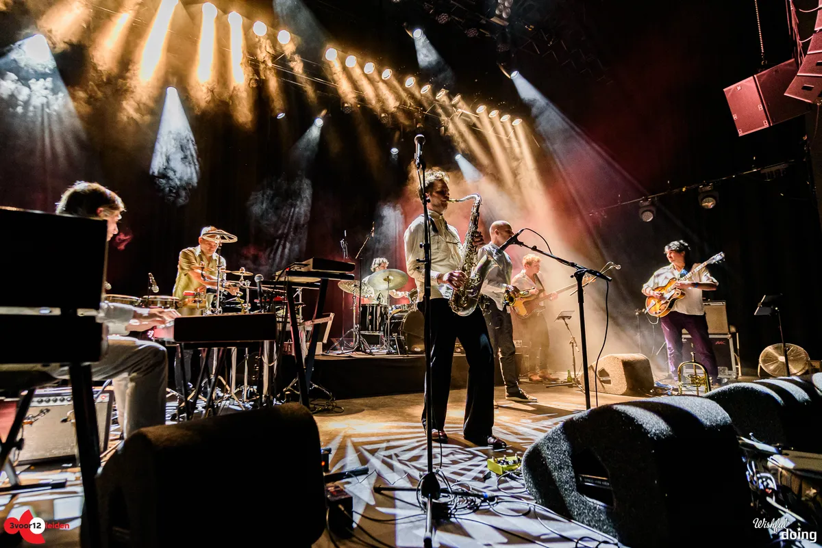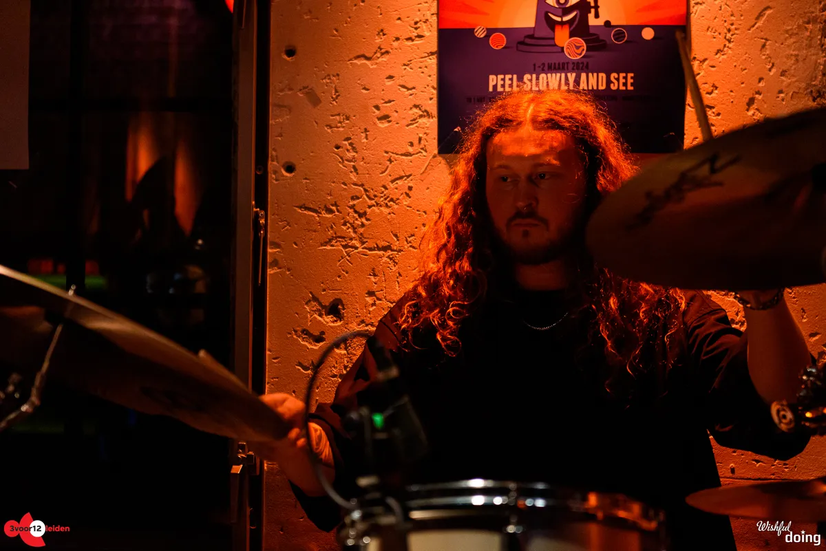 De Leidse saxofonist Bart Wirtz was al twee keer eerder met verschillende projecten te zien op Peel Slowly and See, maar voor vanavond kreeg hij carte blanche om het openingsconcert te verzorgen. Daarvoor stelde hij een band samen met ervaren muzikanten uit Leiden en min of meer nabije omgeving; een zevenmansformatie die naast Bart zelf bestaat uit Matthijs Sepers (trompet), Emiel van Rijthoven (toetsen), Timothy van der Holst (elektronica), Robin van Baaren (basgitaar), Lucas Meijers (gitaar) en Jimmi Hueting (drums). Een avond plaatjes draaien met Peel Slowly and See-programmeur Mark Siera leverde de nodige inspiratie op, wat resulteert in een diverse set. Wirtz is vooral bekend als jazzmuzikant, maar vanavond laat hij in de grote zaal van de Nobel horen dat hij ook graag experimenteert met andere genres. Zo horen we onder meer invloeden van The Velvet Underground, brengt de band een nummer met een zomerse reggae-feel en horen we een wat rustiger track met een waterdruppel-sample, die op momenten aan Massive Attack doet denken. Niet alleen qua genre, maar ook qua instrument verlegt Wirtz zijn grenzen: meestal speelt hij altsax, maar vanavond is hij op een tenorsaxofoon te horen. Ook waagt hij zich zelfs aan zang en spoken word. Al met al een geslaagde en veelzijdige opening en een kleine voorbode voor de muzikale avonturen die we vanavond gaan beleven.