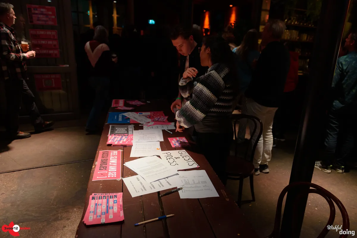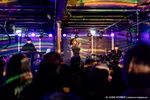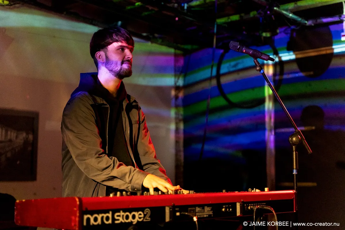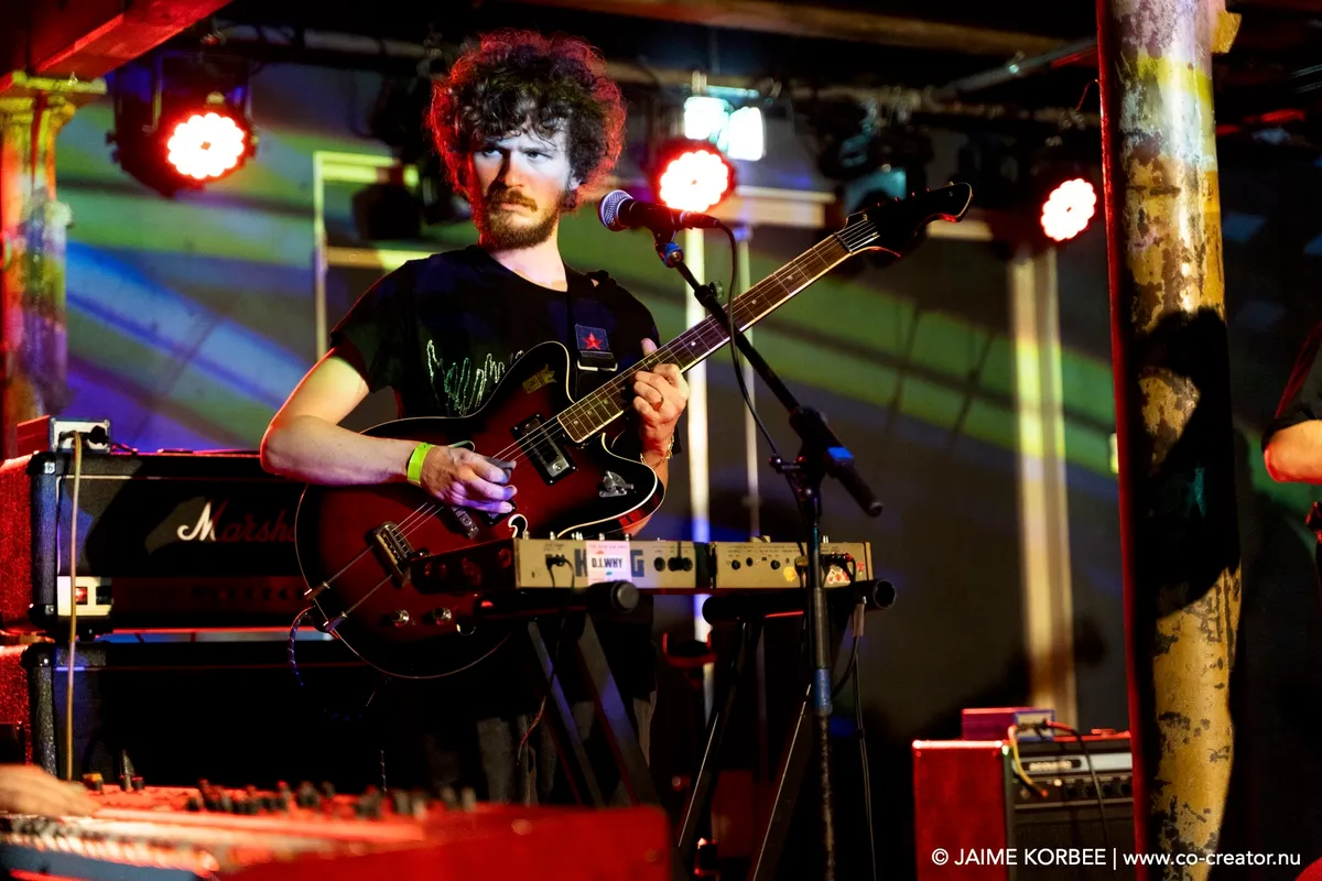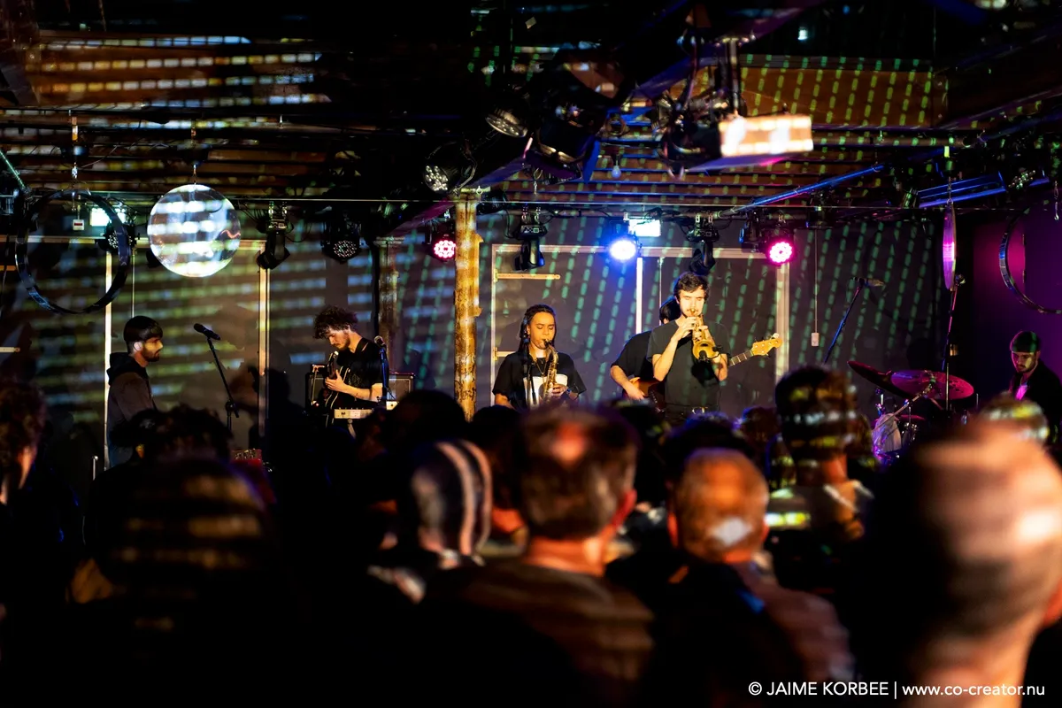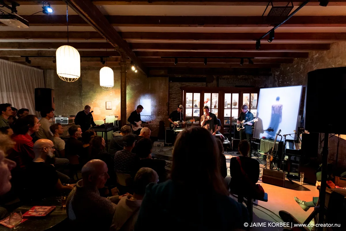 De Leidse saxofonist Bart Wirtz was al twee keer eerder met verschillende projecten te zien op Peel Slowly and See, maar voor vanavond kreeg hij carte blanche om het openingsconcert te verzorgen. Daarvoor stelde hij een band samen met ervaren muzikanten uit Leiden en min of meer nabije omgeving; een zevenmansformatie die naast Bart zelf bestaat uit Matthijs Sepers (trompet), Emiel van Rijthoven (toetsen), Timothy van der Holst (elektronica), Robin van Baaren (basgitaar), Lucas Meijers (gitaar) en Jimmi Hueting (drums). Een avond plaatjes draaien met Peel Slowly and See-programmeur Mark Siera leverde de nodige inspiratie op, wat resulteert in een diverse set. Wirtz is vooral bekend als jazzmuzikant, maar vanavond laat hij in de grote zaal van de Nobel horen dat hij ook graag experimenteert met andere genres. Zo horen we onder meer invloeden van The Velvet Underground, brengt de band een nummer met een zomerse reggae-feel en horen we een wat rustiger track met een waterdruppel-sample, die op momenten aan Massive Attack doet denken. Niet alleen qua genre, maar ook qua instrument verlegt Wirtz zijn grenzen: meestal speelt hij altsax, maar vanavond is hij op een tenorsaxofoon te horen. Ook waagt hij zich zelfs aan zang en spoken word. Al met al een geslaagde en veelzijdige opening en een kleine voorbode voor de muzikale avonturen die we vanavond gaan beleven.