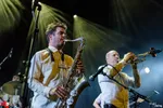 De band heeft een virtuoze vitaliteit waar je u tegen zegt, gepaard met een nuchterheid van ‘zeg maar jij’. De teksten gaan hard op de maatschappij maar zijn lief voor de mens, en sporen aan tot actie. Over actie gesproken: het is een beetje jammer dat de toeschouwers meer een luister- dan een danspubliek lijken te zijn tijdens dit optreden. Een rustiek nummer met de muzikanten hel blauw verlicht, 'Strum und Drang' (geen spelfout) dat uitmondt in een extatische breakdown en een track waarbij drummer Katherina Bornefeld de zang doet (met een stem die niet zou misstaan bij een Keltische folkband): het kan allemaal rekenen op dezelfde geconcentreerd luisterende respons. Volledig begrijpelijk, maar soms moeten naast de trommelvliezen ook de benen wapperen.