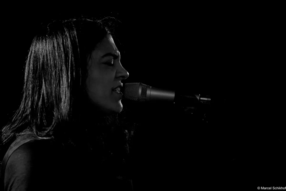 Met haar verhalende, dromerige songs creëert Nadine Khouri een intieme sfeer in de Qbus.