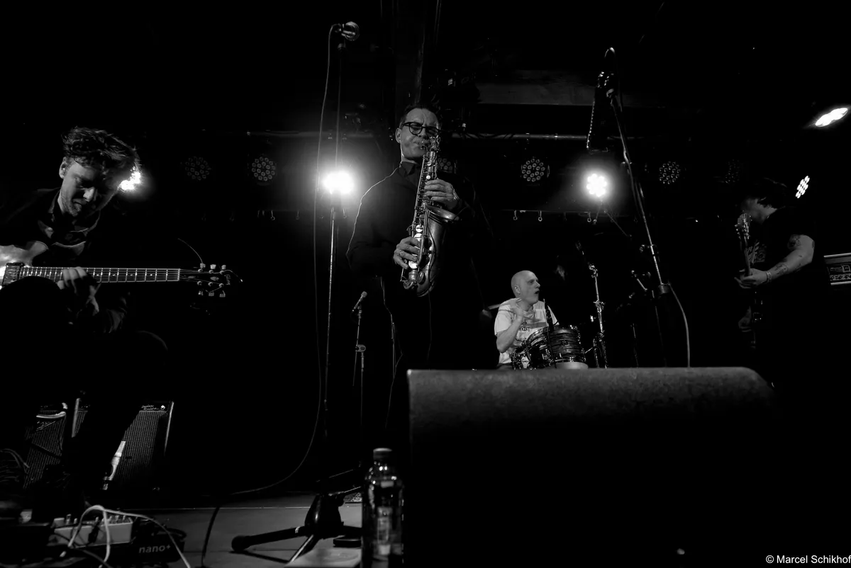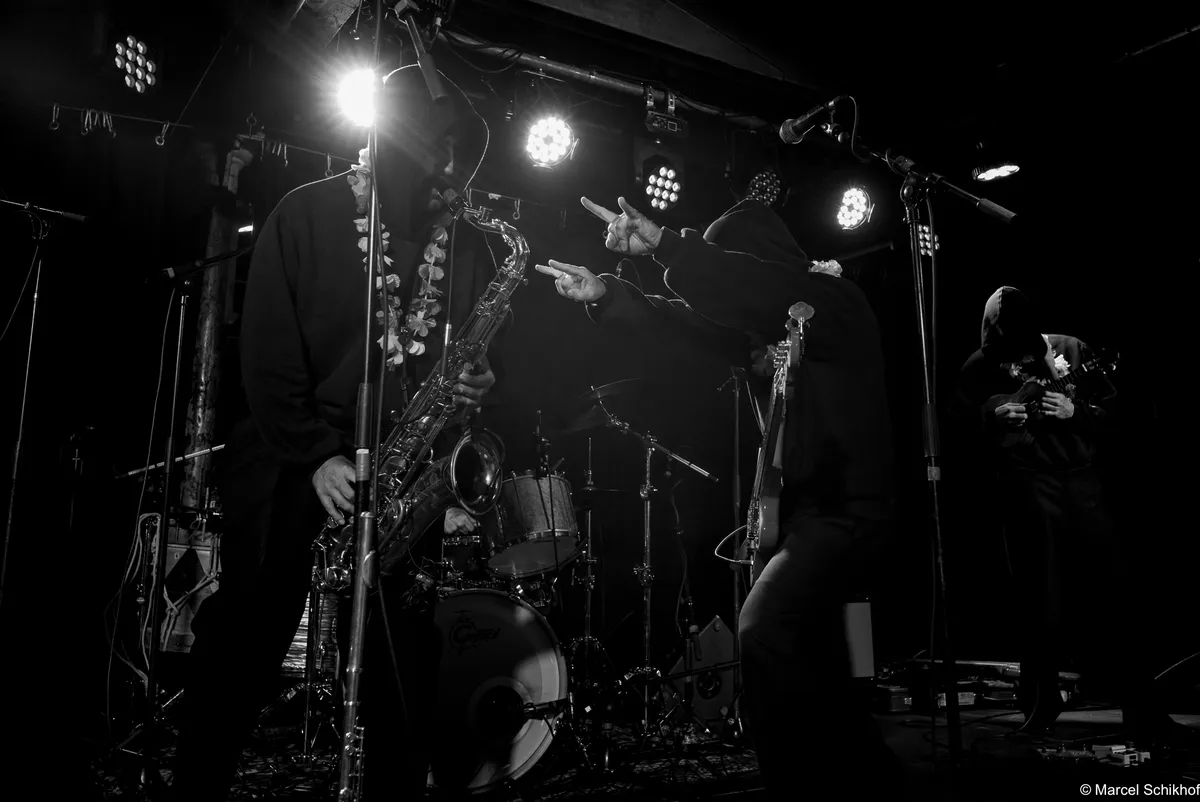 Nummer na nummer spat de energie er vanaf. Drummer Olav van den Berg lijkt ontsnapt uit een jaren ‘80 thrashmetalband, bassist Peter Peskens hierheen gestraald vanuit een Londense punk-kelder. Gitarist Reinier Baas plakt razend handig alles aan elkaar met razende loopjes en (jazzy) akkoordenwissels zodat de saxofoon het dak van dit bug-huis kan wegblazen.