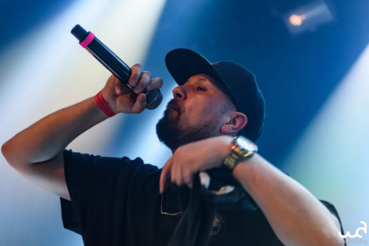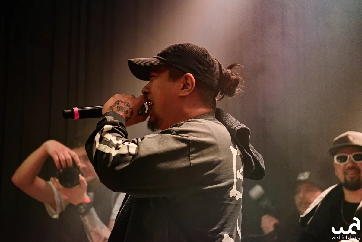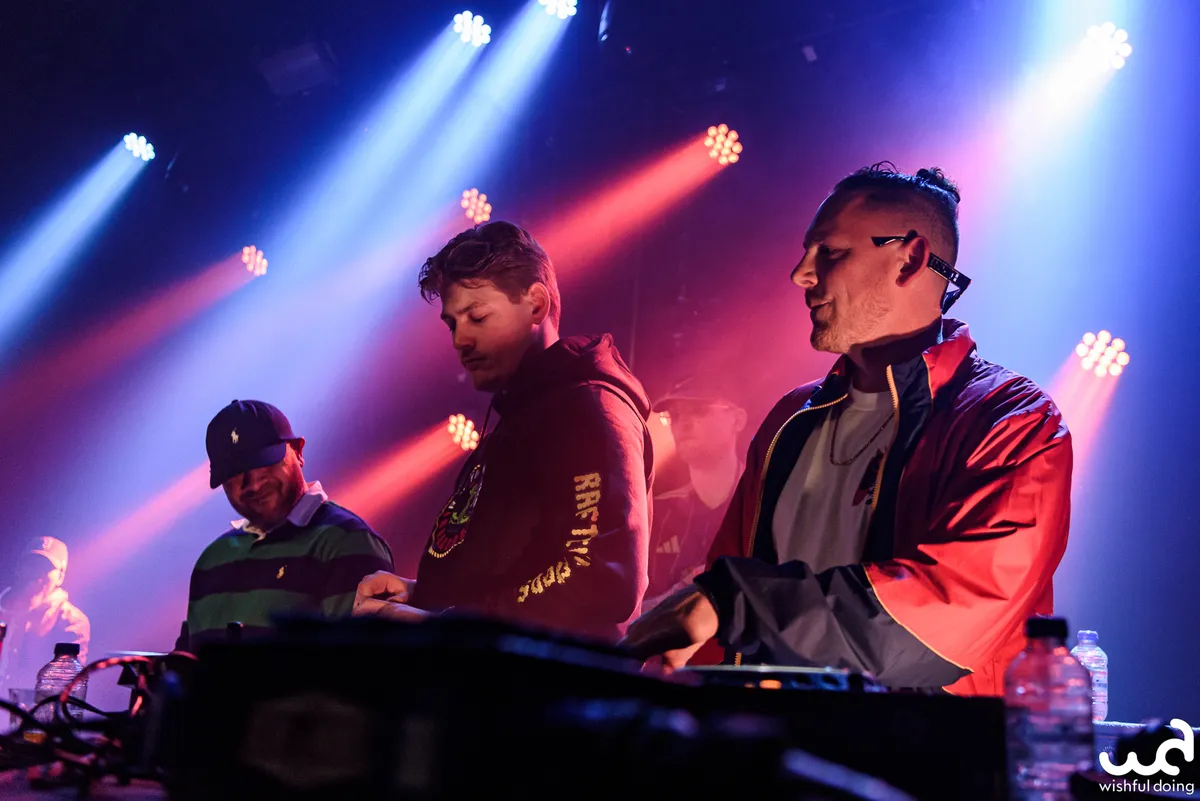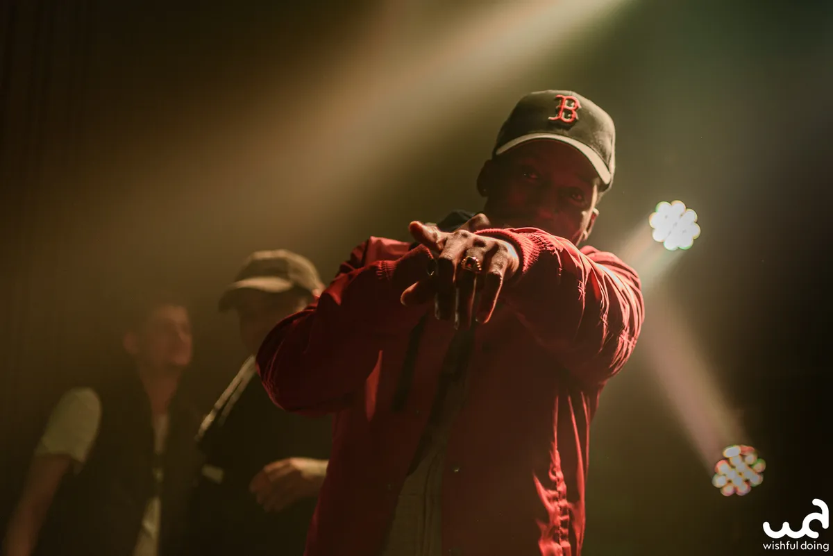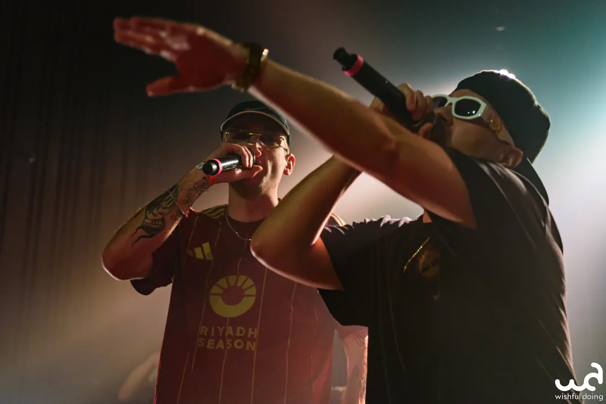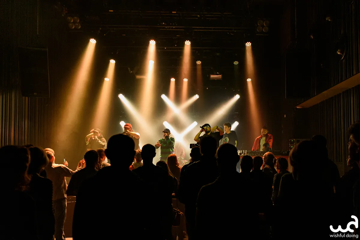 Rafting Goods is er vandaag in bescheiden vorm, want de superformatie zou nooit in zijn volledigheid op het podium van de kleine zaal van de Nobel passen. Mannen uit alle windstreken van Nederland, van Gs met een zachte g tot Achterhoekers met aanstekelijke hooks. Er ligt een uitgebreide setlist klaar met niet alleen de nummers, maar ook een dienstrooster wie van de crew wanneer inspringt. De eerste tracks beginnen wat lauw en de tekst zit niet helemaal zuiver op de beat, wat een Jeb Bush-impressie geeft als ze het publiek vragen wat meer energie te geven. Vanaf ‘Goud Waard’ gaat de grindset erin: meer combo’s in de flow, vlottere tracks, ook de niet-actieve rappers staan in plaats van dat ze hangen, avontuurlijkere samples, en de toeschouwers gewoon commanderen om mee te doen in plaats van het beleefd te vragen.