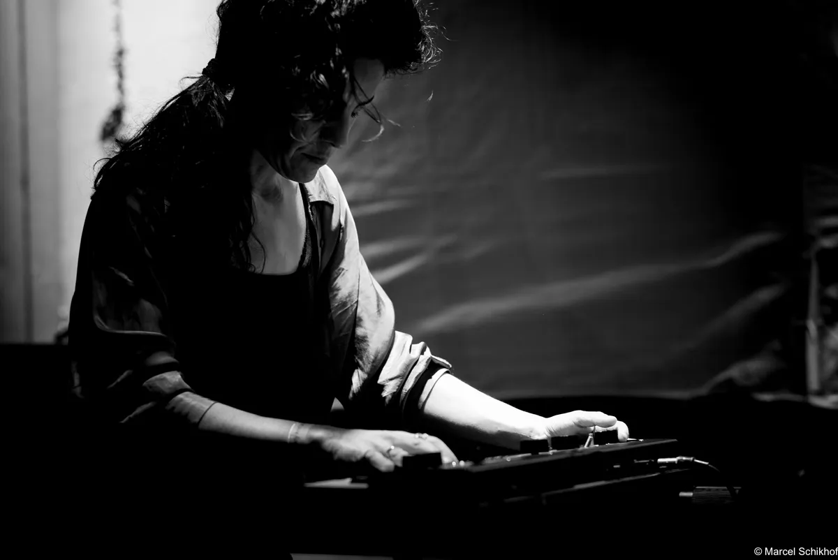 In het midden van de zaal ligt een berg instrumenten. Het publiek beweegt er nieuwsgierig omheen. Kleine percussie, een viool, een saxofoon - en nog veel meer, half verborgen in het sfeervol gedempte licht. Alles wordt omringd door een indrukwekkende verzameling aan elektronica, verbonden door kronkelende kabelbossen.