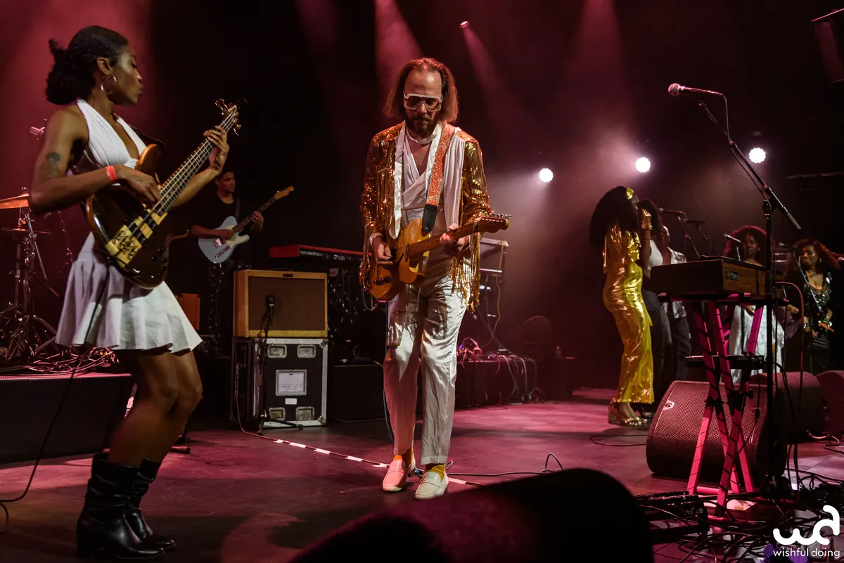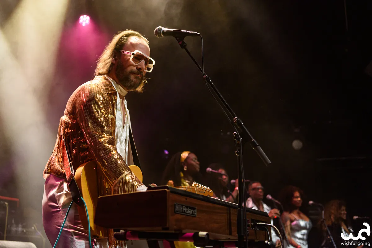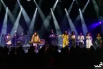De voorste rij muzikanten draagt duidelijk de show. Zij maken contact met de zaal met hun uitnodigende mimiek en energieke performance. De muzikanten op de ‘tweede rij’ zijn deels amper te zien en zij dragen dan ook eenvoudige zwarte T-shirts, in tegenstelling tot de uitbundige glitter-outfits van Arp en de vijf zangers vooraan het podium. “It’s a rock & roll kind of church!” zegt Arp enthousiast tegen de dansende zaal. Want zijn songs mogen zich dan prima lenen voor onbezorgd dansen, voor wie ervoor open staat bevatten de nummers ook een diepere, religieuze boodschap. Zo wil de band graag hoop brengen, zonder dogmatisch te zijn. “Gospel betekent eigenlijk ‘goed nieuws,’” legt Arp uit. Samen muziek maken kan op zich al voelen als een religieuze ervaring, net als het genieten van goede muziek. Zo kan spiritualiteit tijdens een ontspannen uitgaansavond toch dichterbij zijn dan je denkt. (CB)