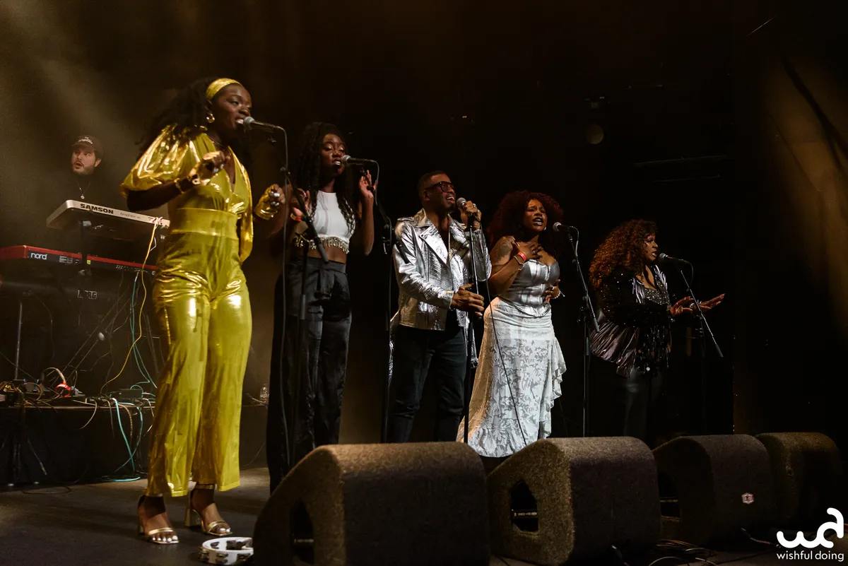 Ook tijdens een bezoek aan dit avontuurlijke festival kun je op safe spelen: met Arp Frique & the Perpetual Singers is het gegarandeerd feest. Met hun opgewekte mix van soul, funk en gospel heeft dit tienkoppige gezelschap de grote zaal van de Nobel in no time aan het dansen. De Rotterdamse multi-instrumentalist en frontman Arp Frique (in het dagelijks leven bekend als Niels Nieuborg) was in 2019 al op PSAS te zien met een eerder project. Met zijn Perpetual Singers stond hij in januari nog op Eurosonic Noorderslag en vanavond dus in de sleutelstad. Voor dit nieuwe initiatief werkt hij samen met o.a. Rocq-E Harrel en Brandon Delagraentiss. Net als de andere zangers introduceren zij zichzelf zingend tijdens het voorstelrondje na het derde nummer, wat daardoor een minutenlange show oplevert. Opvallend bij het voorstellen van de muzikanten is het massale applaus als bassiste Marilonah Copra wordt genoemd. Ze heeft blijkbaar haar eigen fanclub meegenomen. Haar spel is – net als dat van de anderen – groovend en technisch indrukwekkend, dus dat applaus is overigens geheel terecht.