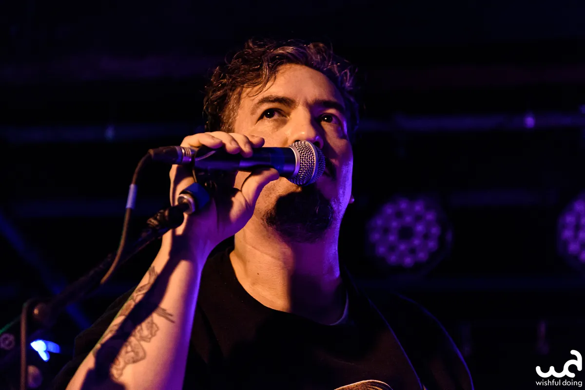 De gitarist wisselt de cavaquinho in voor een elektrische gitaar en er ontstaan surf-sound-nummers met veel onverwachte ritmewisselingen. Ik moet mijn verwachtingen wel flink bijstellen qua vlammenzeeën, maar geef me met plezier over aan deze Zuid-Amerikaanse circusstoet van Jeroen Bosch, die een spoor van pek en verwarring achterlaat op de maanovergoten stranden van Brazilië.