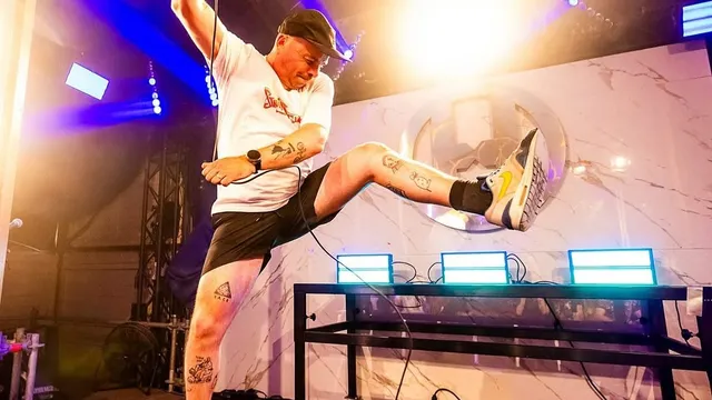 AKa Rinde Gewapend met een steel-string gitaar, monster basdrum, percussie, stem en een batterij wisselende units brengt de helft van DŸSE, door ons getypeerd als “Meister musikmauers” een ‘acoustic Molotov cocktail with attitude’.