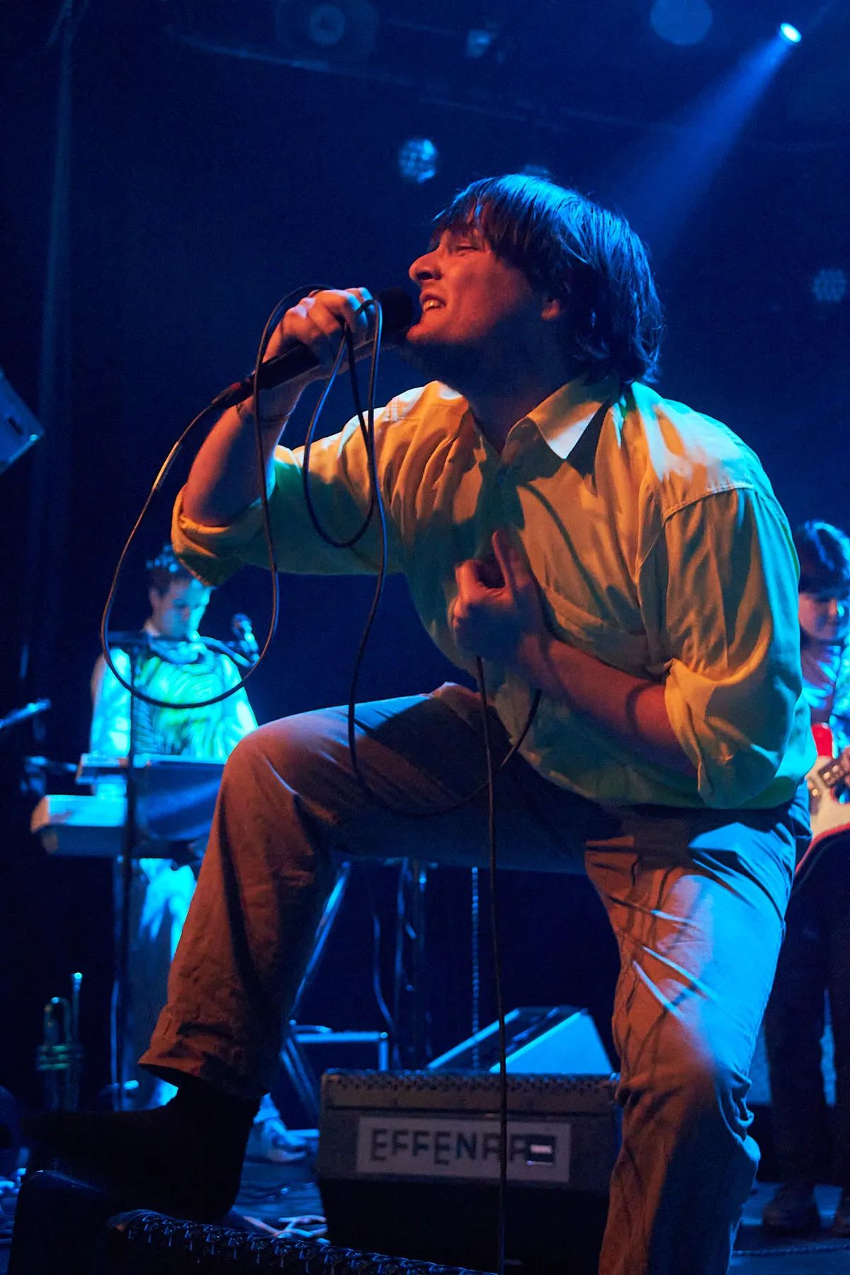 De toetsenist, Abel Tuinstra, steelt de show met zijn waanzinnige gekte. Naast de toetsen bespeelt hij de trompet en de kazoo. Hij stapt vaak weg van zijn plek voor interactie met de bandleden en voor zijn bovenmatige danskunsten en vergezelt Willem voor op het podium. De twee complimenteren elkaar door te dansen en te springen. Maar het moment voor Abel om te stralen gebeurt als de frontman het podium verlaat. De toetsenist vult de zaal met geïmproviseerde teksten en geluiden. Totdat Willem terug komt met een nieuwe voorraad aan blikjes bier.
