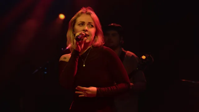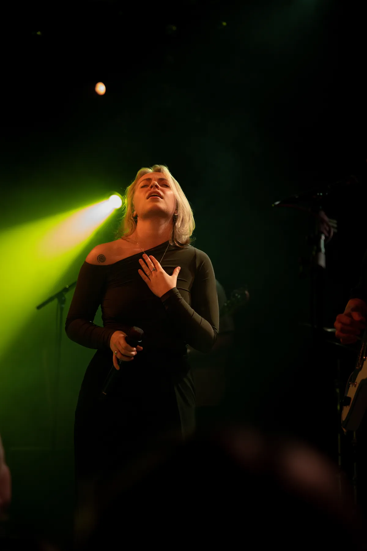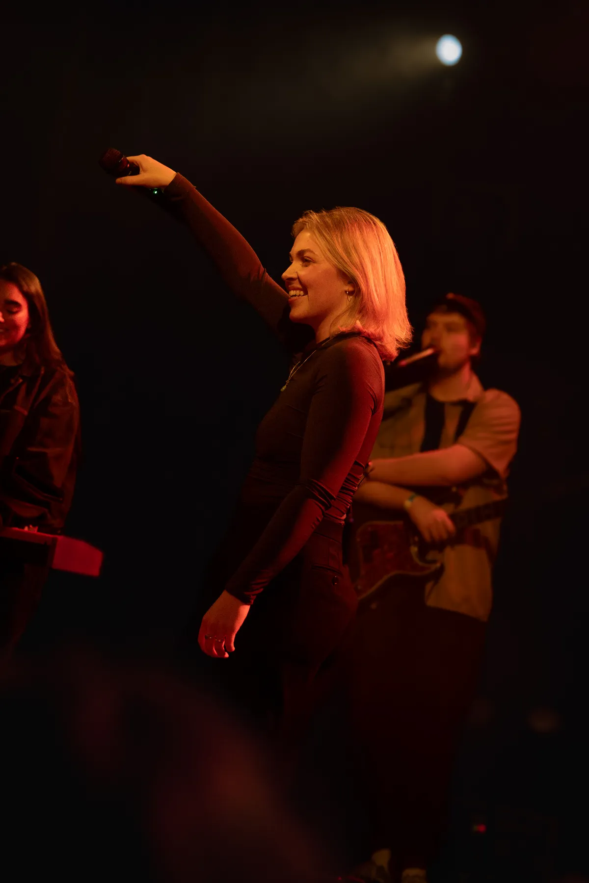 ,,Hallo allemaal”, komt er vanuit de microfoon. Terwijl ze nadenkt over haar volgende zin wordt ze met trots onderbroken: ,,Je hele familie staat in de zaal!” gevolgd door een gigagroep handjes die in het midden van de zaal de lucht in gaan. Familie, trotse opa’s, vrienden en heel veel fans die meedeinzen op haar vlijmscherpe vocalen, melodische gitaarrifs en de denderende tikken op de drums. Op exact het juiste moment klinken diepe inhalen van de band als net-buiten-de-maat, maar dat is juist de bedoeling. We worden even op scherp gezet.