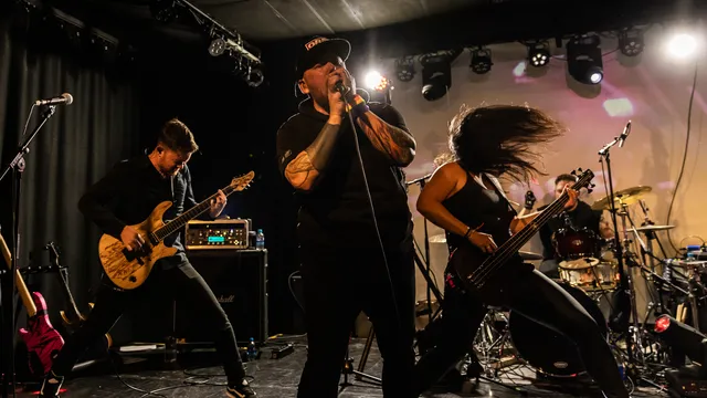 Het Weertse SugarPunch! mag als eerste het podium betreden vanavond. De band probeert voet aan de grond te krijgen in het (Limburgse) alternatieve circuit met hun mix van rock en poppunk en deed eerder al mee aan de Popronde. Zangeres Janneke Teunissen en gitarist Michael Seuren zijn de boegbeelden van de band. De band opent ietwat bescheiden, maar bij het tweede nummer ‘Let you fall’ gooien ze de schroom van zich af. Het nummer bevat een bloemlezing van het geluid dat de band wil laten horen. Melodieuze opbouw, een catchy refrein, een stevig riffje en afwisselende zang. De stem van Janneke is prima, vooral bij de hardere stukken, maar is wel fragiel. Tijdens de solo’s danst ze als een volleerd cheerleader met de muziek mee. De nieuwe single ‘His girl now’ vormt het middelpunt van de setlist. Gitarist Michael zorgt voor de nodige interactie met het publiek, dat duidelijk nog even goed wakker geschud moet worden. Bij afsluiter ‘I want it all’ slaat de vonk wel even over. Na het optreden spraken we nog met de 96-jarige oma van Janneke. Zij was voor het eerst bij een optreden van haar kleindochter en hoopt nog vele optredens te mogen bezoeken. Oordopjes had ze niet nodig, want ze had haar hoorapparaat voor het gemak even uitgeschakeld. Zo zie je maar weer: you’re never too old to rock!