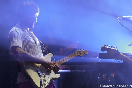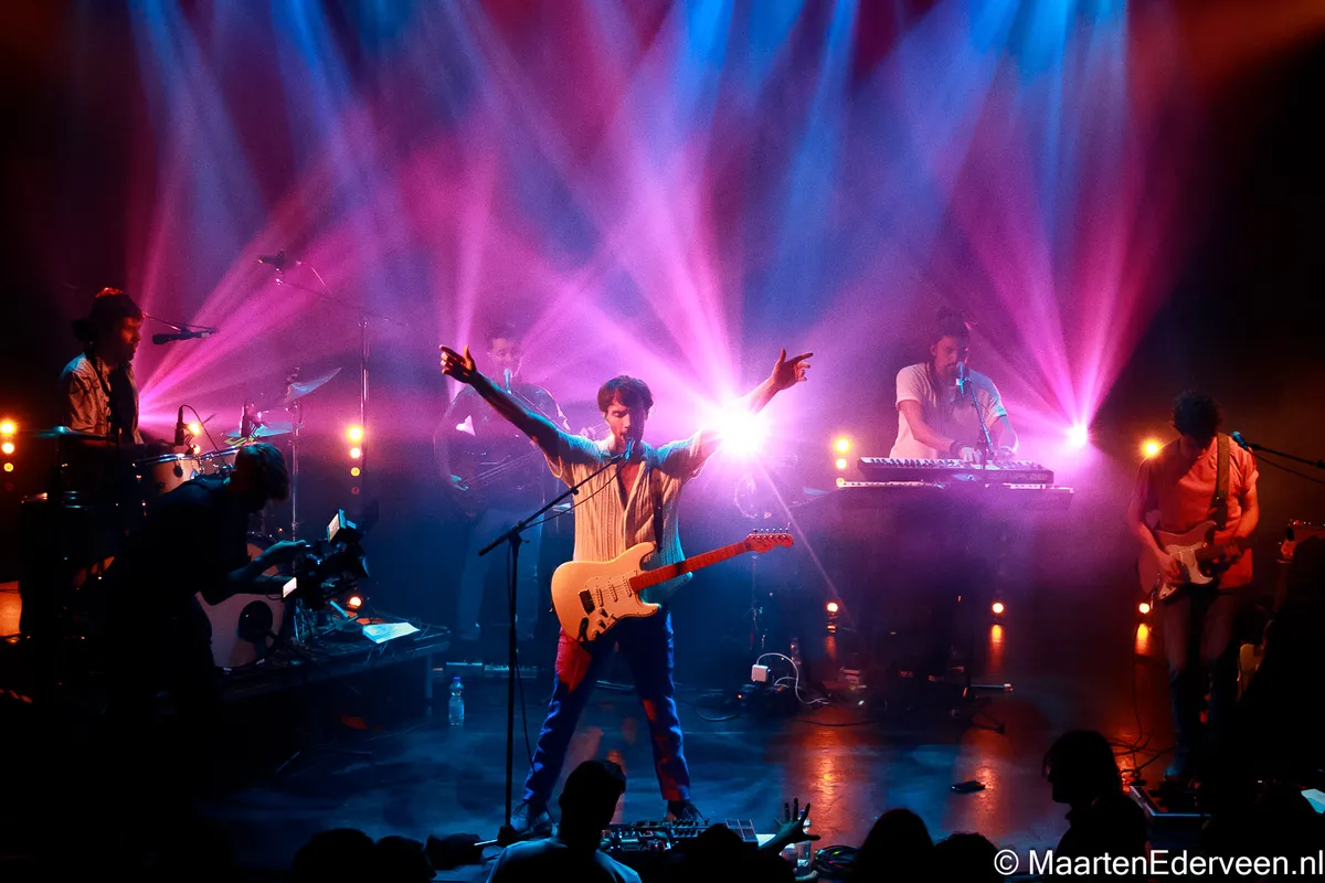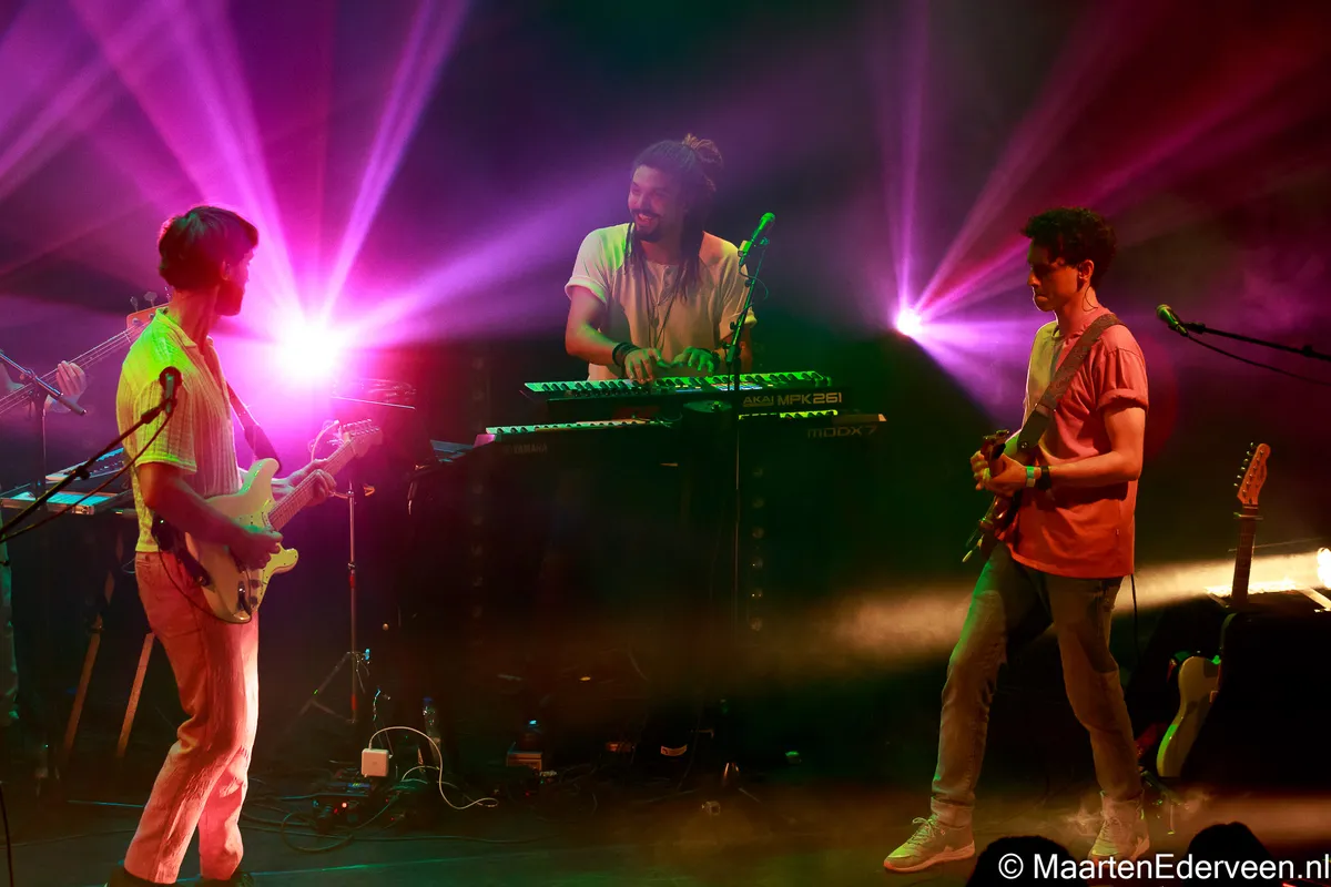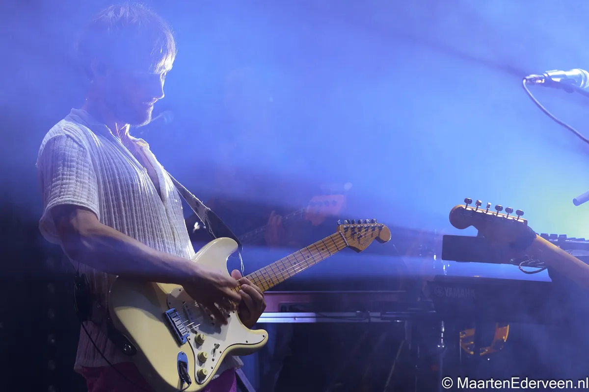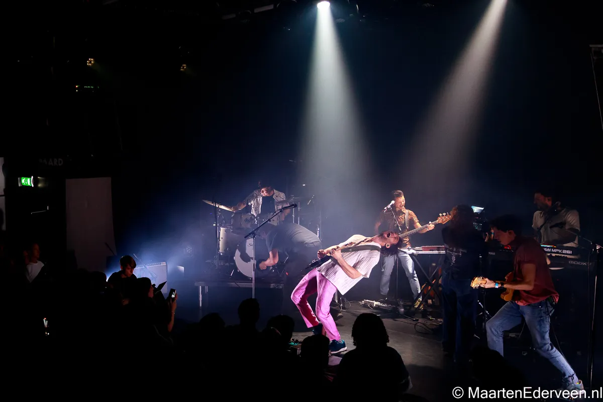Pineapple Kid bestaat uit vijf muzikanten en al snel wordt duidelijk dat zij de eerder uitgebrachte tracks van de EP live een stuk steviger laten klinken. De gehoorbescherming van een wel heel jonge fan die op de schouders wordt genomen, blijkt niet voor niets. De bombast in combinatie met een uitgekiende lichtshow is ronduit spectaculair. Met het pakkende ‘Hold On’ waarin interessante percussie en sterke vocalen bij elkaar komen, wordt al vroeg een sterke troef uitgespeeld. Ook het meer ingetogen ‘Start All Over Again’ doet het prettig in de set. “Fijn dat jullie er allemaal zijn, dat maakt de show toch wat leuker”, aldus Seriese. Met de nodige ervaring om zich heen - bandleden speelden onder meer in Soul Sister Dance Revolution, Trudeau en Pitch Blond - voelt de enthousiaste bandleider zich duidelijk comfortabel. Met een tweede gitarist in de gelederen kan hij zich dan ook iets meer op het vocale gedeelte focussen.