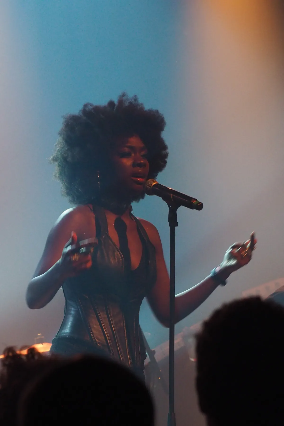 Pink Oculus is de artiestennaam van zangeres en frontwoman Esperanza Denswil. Naast de zang verzorgt zij de song-writing. Overigens is zij ook rapper, producer en actrice! Van de zang, het schrijven en het rappen mochten we deze avond in ieder geval genieten. Pink Oculus speelt samen met Jeremiah Owusu Ansah op drums, Emmanuel Neizer op bas, Yannick Hiwat op viool, synthbas en synthesizer en Natascha Brouwer en Jefferson DaVeiga doen de achtergrondzang.